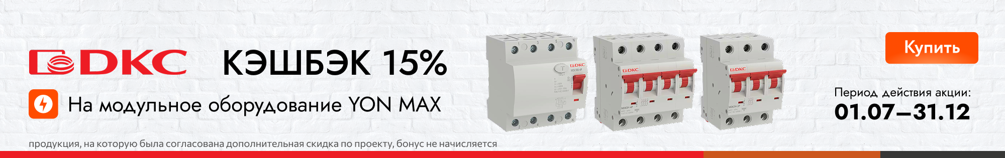 Условия проведения акции: кэшбэк 15% Зарядами за покупку выделенных серий от DKC. Без порогов. Начисление Зарядов через 2 дня после отгрузки.
