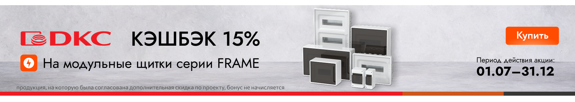 Условия проведения акции: кэшбэк 15% Зарядами за покупку выделенных серий от DKC. Без порогов. Начисление Зарядов через 2 дня после отгрузки.