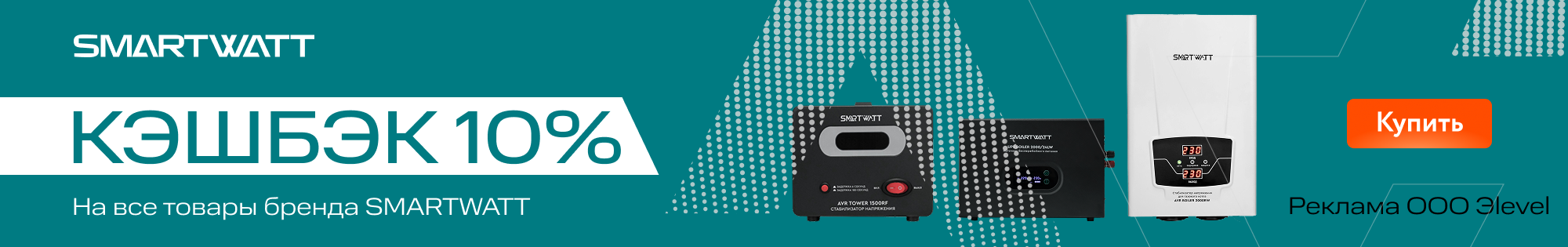 Продукция, участвующая в акции: любое оборудование бренда SMARTWATT (кроме ИБП и Стабилизаторов). Товары, участвующие в акции, отмечены специальным знаком ![]()