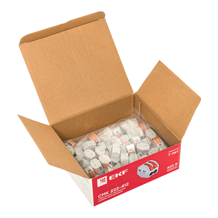 EKF PROxima Строительно-монтажная клемма СМК 222-412 с рычагом 2 отверстия 0,08-2,5мм2 (100шт.).