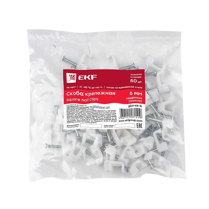 Название производителя: Скоба крепежная квадратная (плоская) (6мм.) (50шт.) EKF PROxima