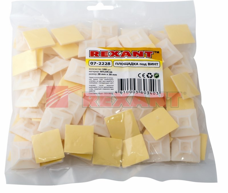Название производителя: Площадка под винт самоклеящаяся 28x28 мм, белая (100 шт/уп) REXANT