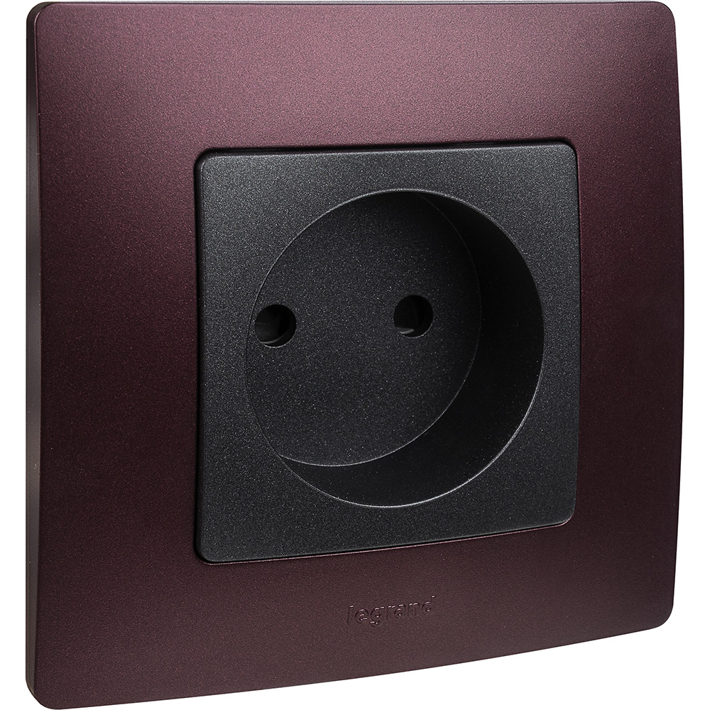 Розетка без заземления Legrand Etika для скрытого монтажа, цвет антрацит. Максимальный ток 16 А, максимальная мощность 3680 Вт. Применяется в зданиях с проводкой без заземления (без защитного проводника). Рекомендуются к применению в квартирах и помещениях с детьми. Шторки осуществляют защитную функцию путём ограничения доступа к токоведущим контактам. Доступ открывается только при подключении вилки.