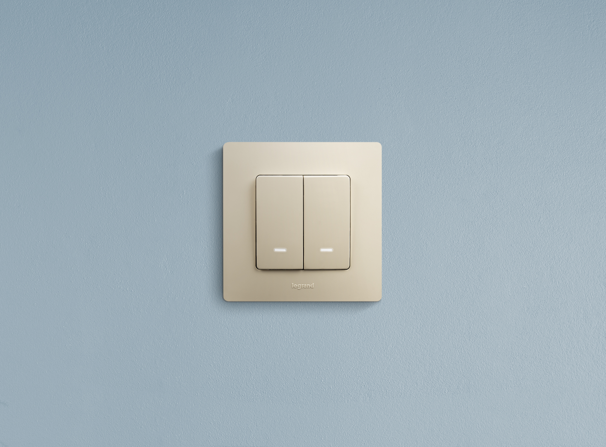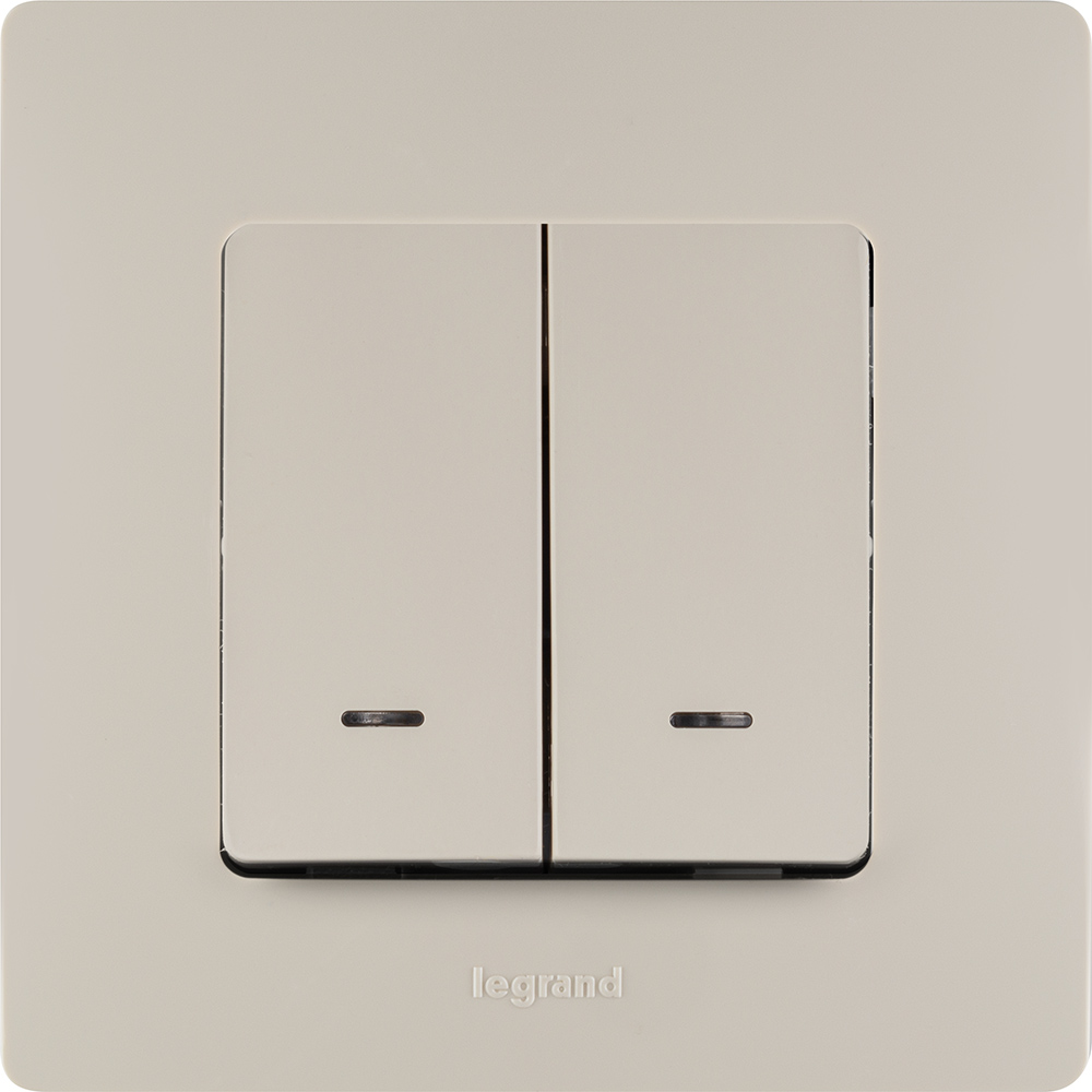 Название производителя: Выключатель двухклавишный с подсветкой/индикацией - Legrand Etika - 10А 250В безвинтовые зажимы - слоновая кость