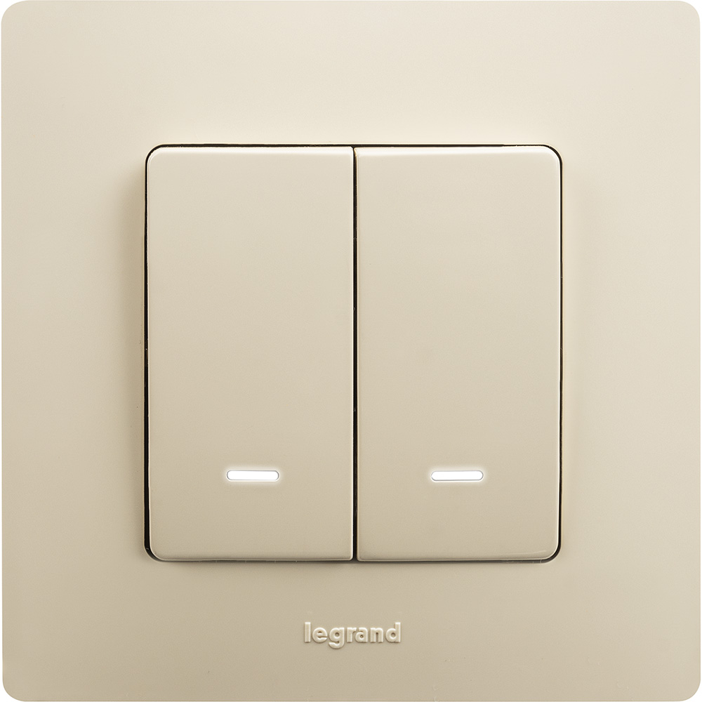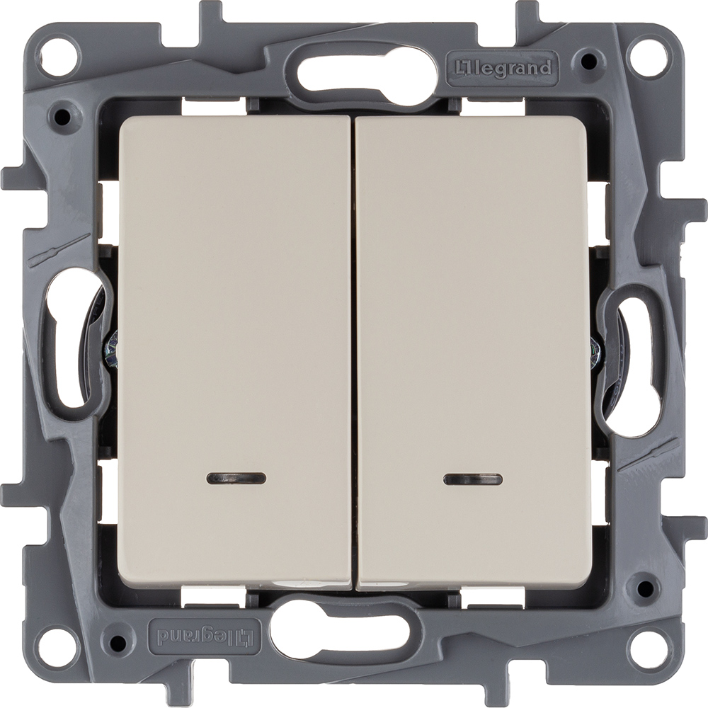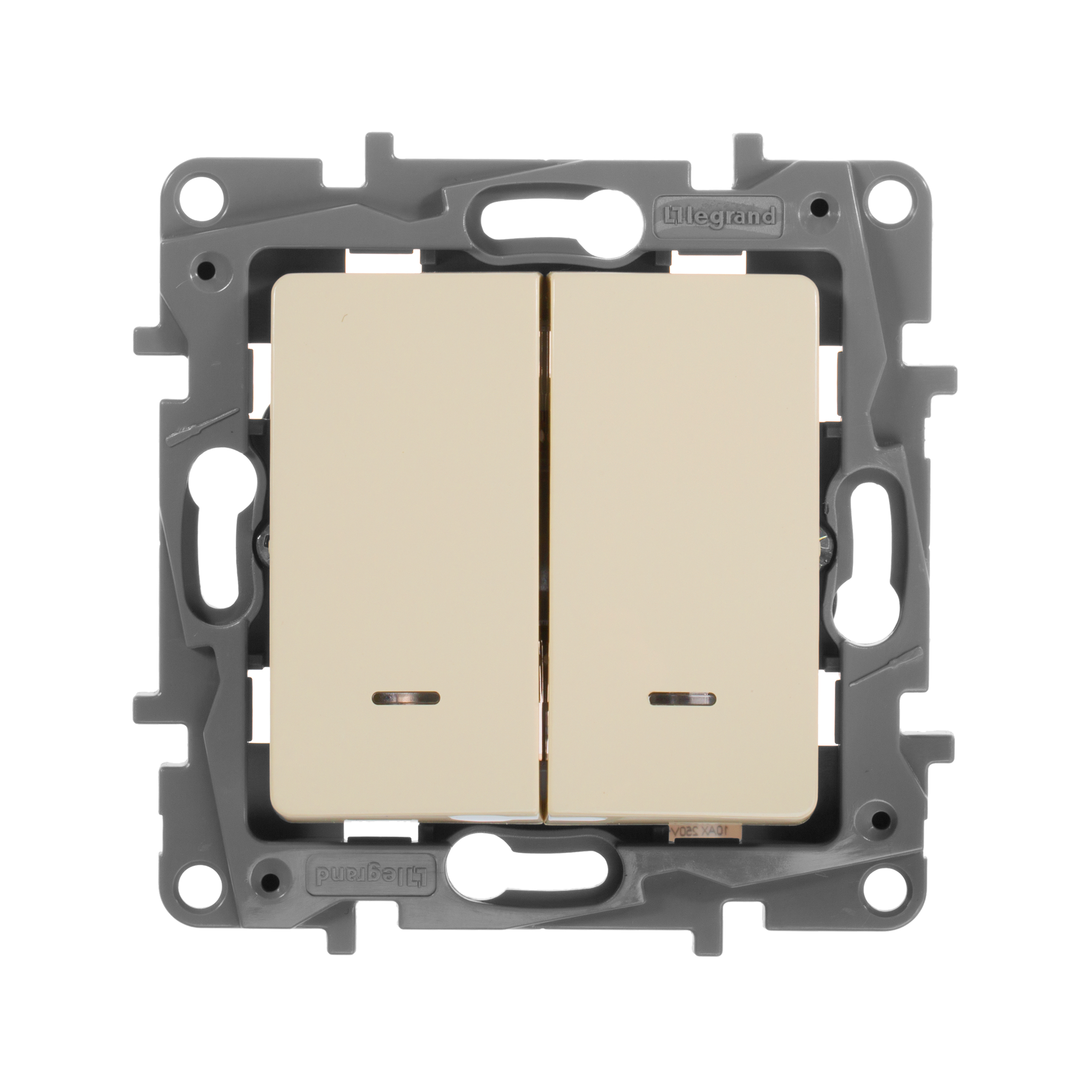 Legrand Etika Слоновая кость Выключатель 2-х клавишный с подсветкой, 10А, Винтовые клеммы.