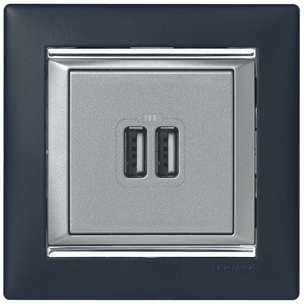 Название производителя: Зарядное устройство USB тип А / тип А - Legrand Valena - 3000мА 15Вт - алюминий