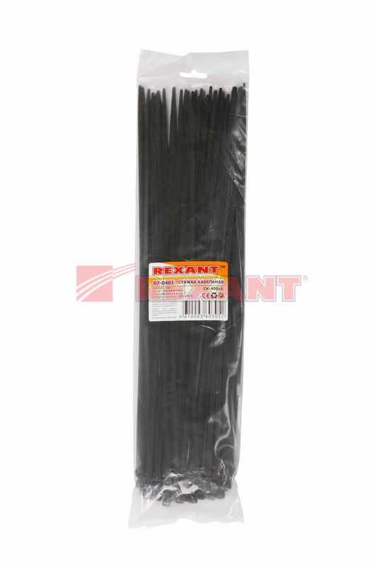 Название производителя: Стяжка кабельная нейлоновая 400x4,8мм, черная (100 шт/уп) REXANT