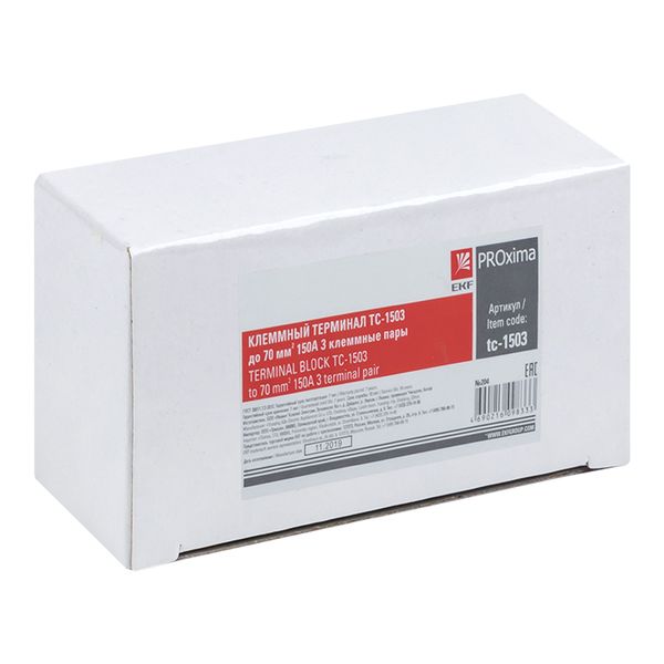 Название производителя: Терминал клеммный TC-1503 до 70 мм2 150A 3 клеммные пары EKF PROxima