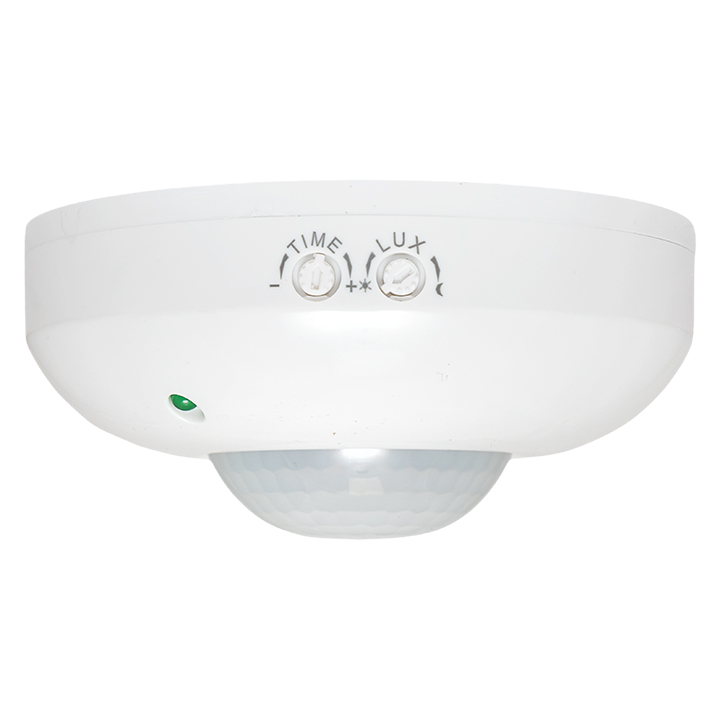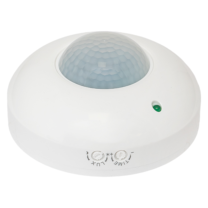 Датчик движения инфракрасный MS-20B предназначен для экономии электроэнергии за счет автоматического управления освещением и другими инженерными системами. Датчик реагирует на движение людей и других объектов в зоне действия сенсора, принцип работы датчика основан на отслеживании уровня ИК-излучения в поле зрения. Датчик MS-20B предназначен для накладного монтажа на потолок. Рекомендуется использовать датчик в кладовках, гардеробных и других помещениях с временным пребыванием людей. Алгоритм работы: при возникновении движения в поле зрения датчика встроенное электромеханическое реле (рассчитано на полную мощность 1200Вт) коммутирует подключенную нагрузку. После этого нагрузка находится под напряжением в течение заданного времени (от 10 сек. до 7 минут, время настраивается) и выключается. Дополнительно датчик имеет функцию контроля освещенности. Если освещенность в зоне детекции выше заданного уровня (настраивается), то нагрузка включаться не будет, что позволяет дополнительно экономить электроэнергию.