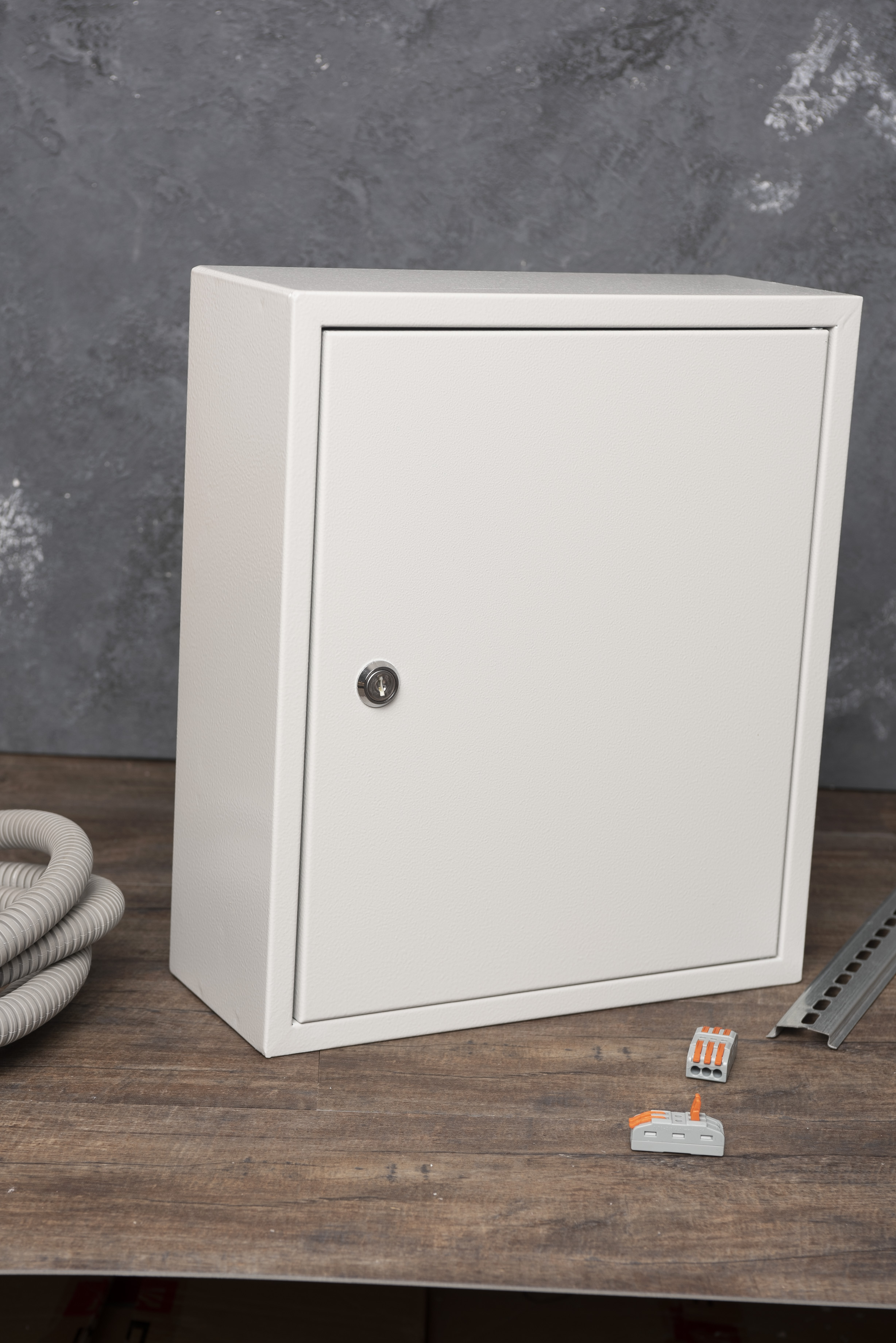 Корпус металлический навесной ЩРН IP31 BASIC — функциональный аналог корпуса серии ЩРН IP31 PROXIMA, но более бюджетный вариант. Предназначен для сборки настенных распределительных щитов с модульной аппаратурой, где не требуются высокие нагрузки. В комплект входит две оцинкованные перфорированные DIN-рейки шириной 280 мм для 24 модулей по 18 мм (2х220 мм, итого 440 мм). Отличается меньшей толщиной металла и базовой комплектацией — без поводков заземления, монтажного набора и маркировочных наклеек. Защита IP31 предотвращает попадание твердых частиц и вертикальных капель воды. Защита корпуса обеспечивается полиэфирным порошковым покрытием с фосфатированием, что защищает от коррозии, ультрафиолета, механических повреждений, химических веществ и атмосферных условий. Щит полностью совместим с модульным оборудованием EKF.