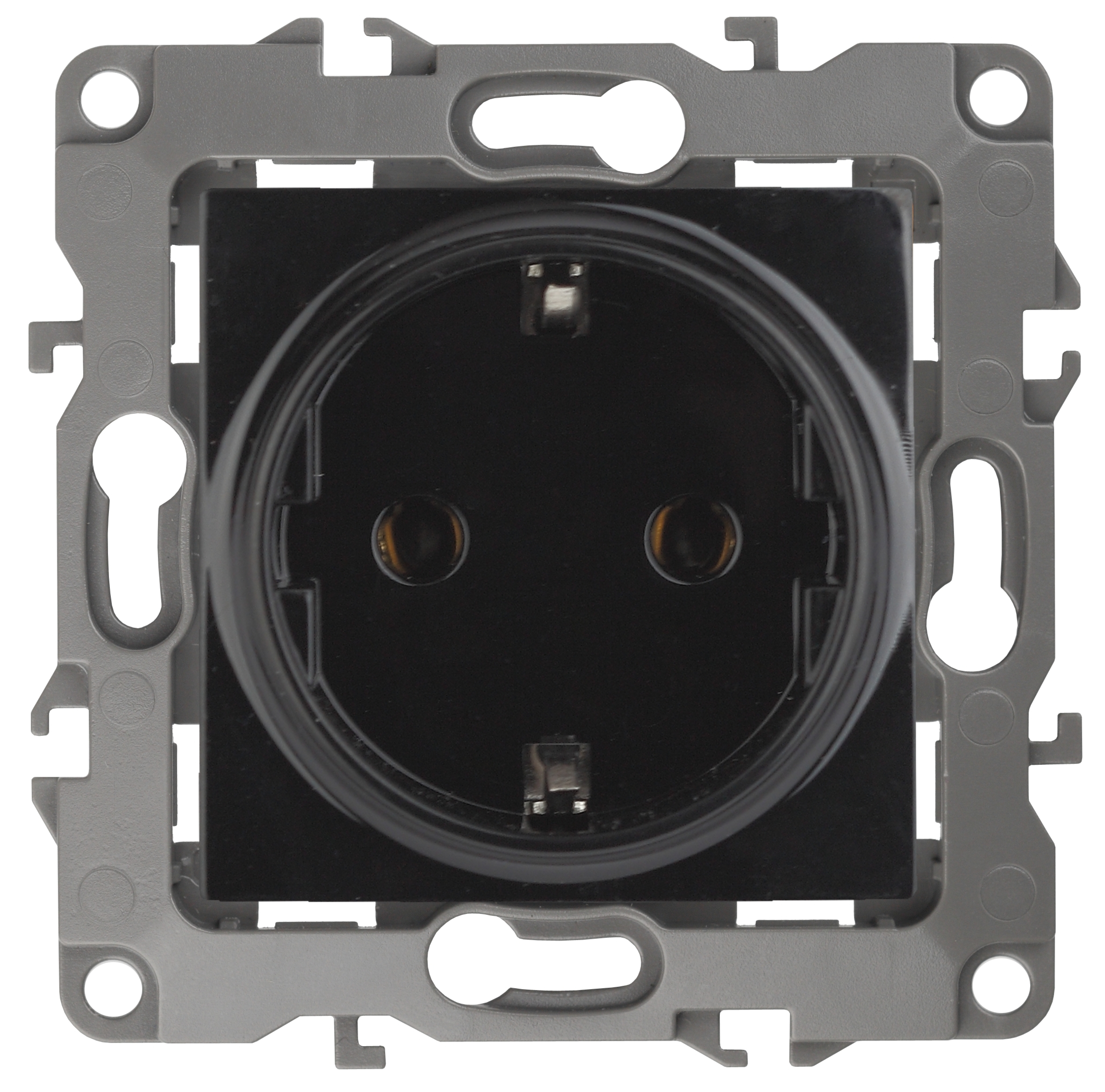 Розетка с заземлением серии Эра 12 скрытой установки механизм цвет чёрный 12-2101-06. Номинальные хар-ки 16А 250В . Сделана из поликарбоната, оснащёна автоматическими клеммами для быстрой и надёжной фиксации жил кабеля в мех аниме. Парные клеммы обеспечивают соединение шлейфом. Монтаж в подрозетник производится и на лапки, и на винты. Рамки приобретаются отдельно. Рамки Эра 12: 1 пост 12-5001-хх, 2 поста 12-5002-хх, 3 поста 12-5003-хх, 4 поста 12-5004-хх, 5 постов 12-5005-хх. Рамки Эра 12 Сатин: 1 пост 12-5101-хх, 2 поста 12-5102-хх, 3 поста 12-5103-хх, 4 поста 12-5104-хх, 5 постов - 12-5105-хх (хх - код цвета: 01-белый, 02-слоновая кость, 03-алюминий, 04-шампань, 05-антрацит, 06-чёрный, 07-ольха(белёный дуб-сатин), 08-вишня, 09-дуб, 10-венге, 11-сосна, 21-жёлтый, 22-оранжевый, 23-красный, 24-охра, 25-бордо, 26-лайм, 27-зелёный, 28-голубой, 29-синий).