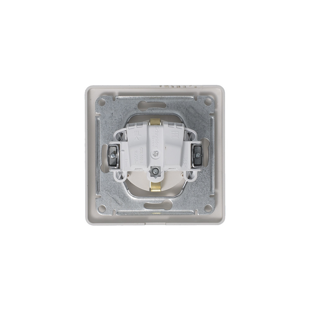 Розетка Systeme Electric (ранее Schneider Electric) серии Glossa (в сборе, цвет платина) одинарная с заземлением, шторками и крышкой подходит для сетей 250 В, на ток 16 А. Изделие со степенью защиты IP44 обеспечит безопасность использования в ванной и на кухне. Заземляющий контакт обеспечивает дополнительную защиту от удара электрическим током. При наличии заземления электрический потенциал уходит в землю, защищая человека. Выполнен из материала PС+ASA, стойкого к УФ-излучению и появлению царапин.