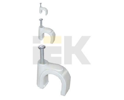 Скоба с гвоздём предназначена для быстрого и надежного крепления круглых кабелей к дереву, прессованному картону, швам кирпичной кладки, к штукатурке, бетону, кирпичу. Изготовлены из гибкого негорючего ударопрочного полипропилена, гвоздь - закаленная оцинкованная сталь.
