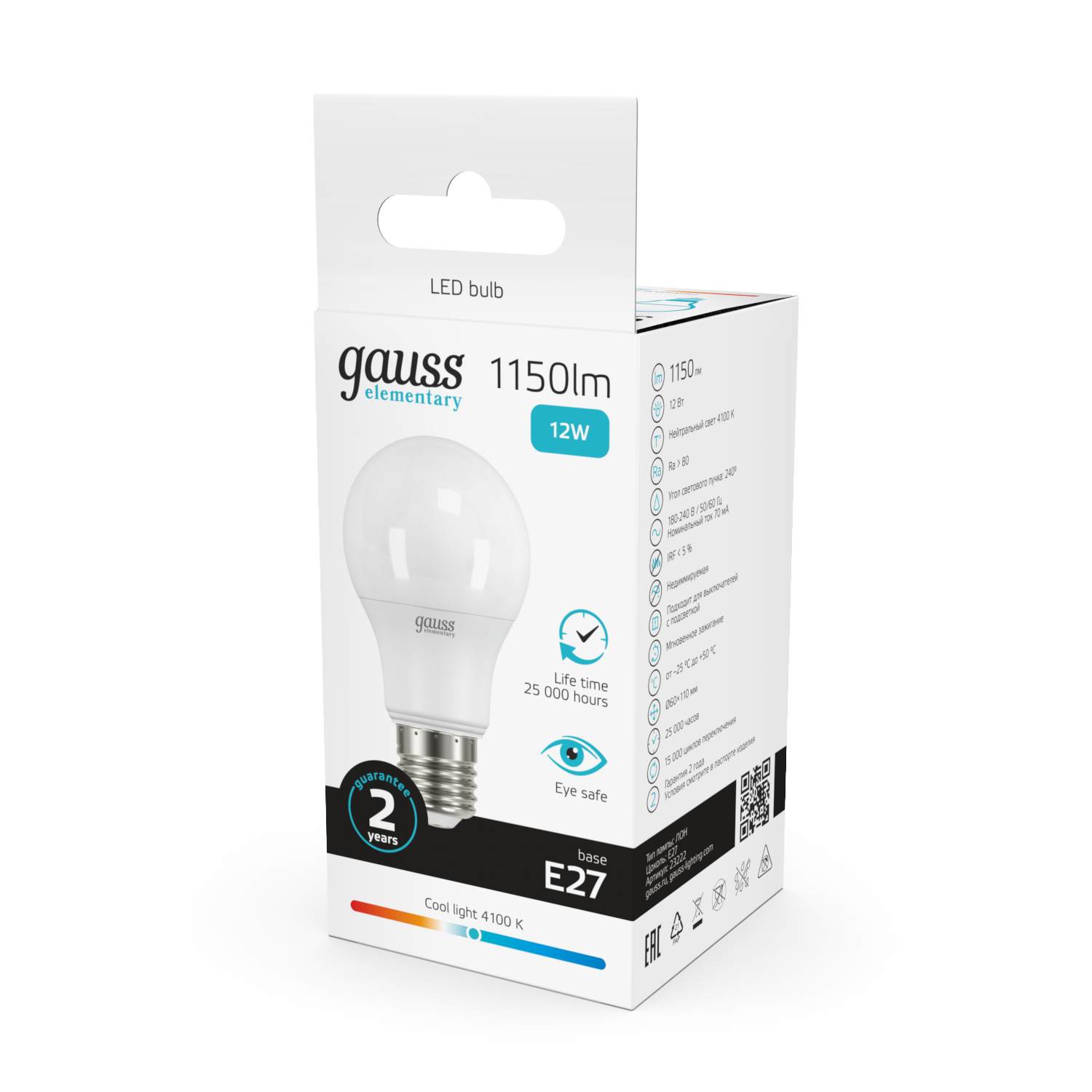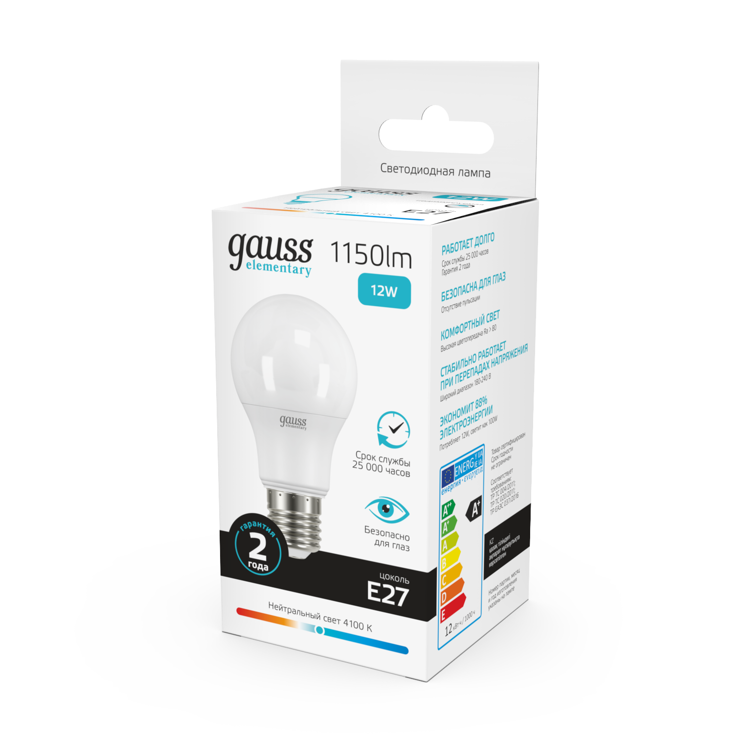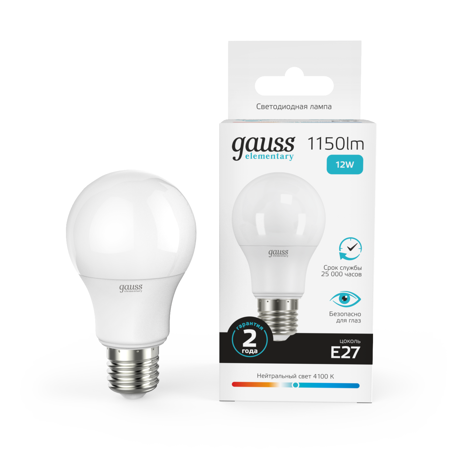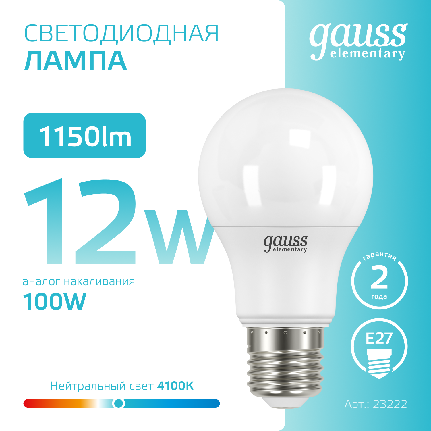 Название производителя: Лампа Gauss Elementary A60 12W 1150lm 4100K E27 LED 1/10/40