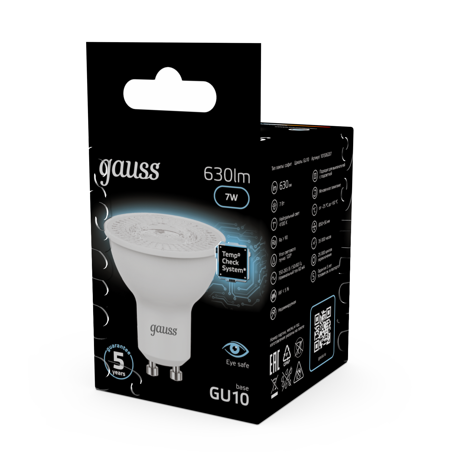 Название производителя: Лампа Gauss MR16 7W 630lm 4100K GU10 LED 1/10/100