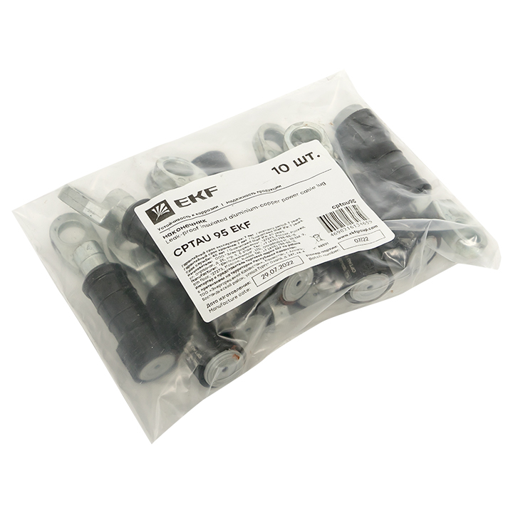 Герметичные изолированные наконечники типа cptau предназначены для соединения СИП с электрооборудованием. Может использоваться для алюминиевых и медных шин. Создают герметичное соединение. Внутренняя часть заполнена контактной смазкой. Монтаж производится методом опрессовки с помощью пресс-клещей. Заглушки разных цветов для визуального определения сечения. Наконечник устойчив к ультрафиолетовому и солнечному излучению, высоким и низким температурам, коррозии и агрессивным атмосферным воздействиям.