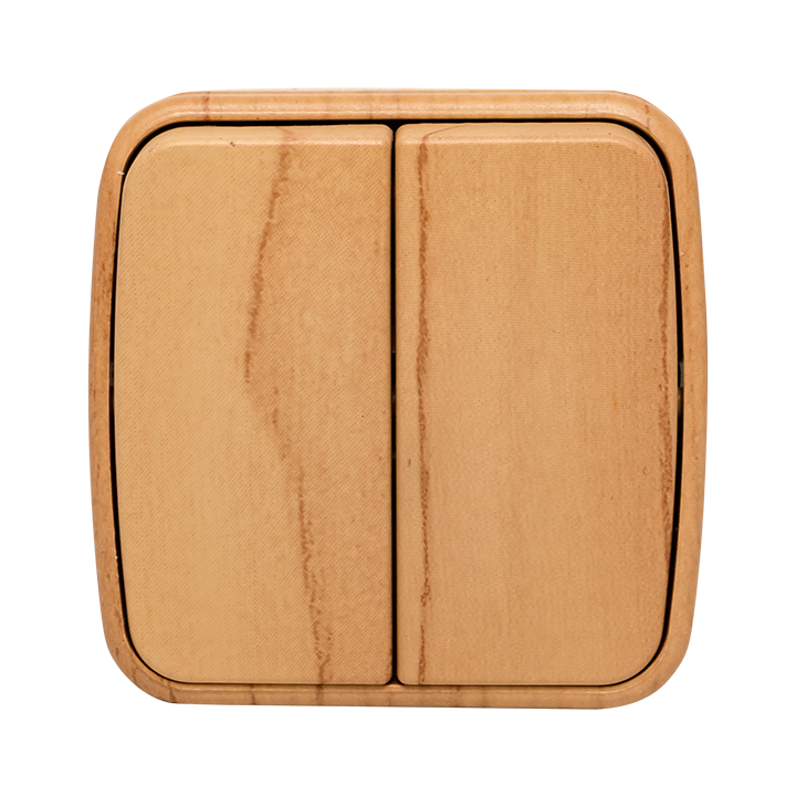Название производителя: Выключатель 2-клавишный ОП Минск 10А светлое дерево EKF