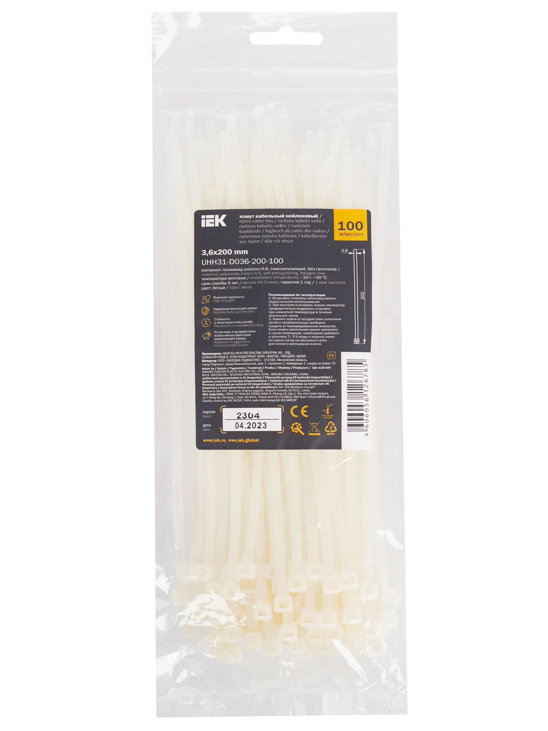 Название производителя: Хомут 3,6х200мм нейлон (100шт) IEK