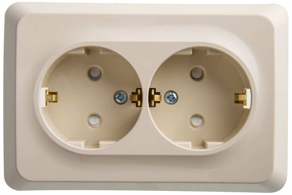 Название производителя: ЭТЮД С/У РОЗЕТКА двойная с заземлением со шторками, 16А, 250B, КРЕМОВЫЙ
