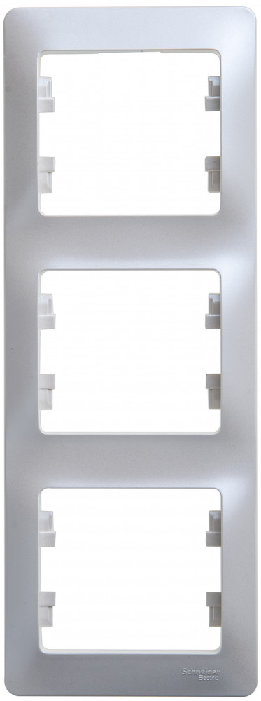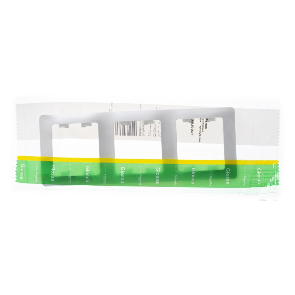 Рамка Systeme Electric (ранее Schneider Electric) серии Glossa (цвет перламутр) трёхместная. Устанавливается в вертикальном положении. Выполнена из материала PС+ASA, стойкого к УФ-излучению и появлению царапин. Позволяет гармонично вписать электроустановочное изделие в интерьер помещения.