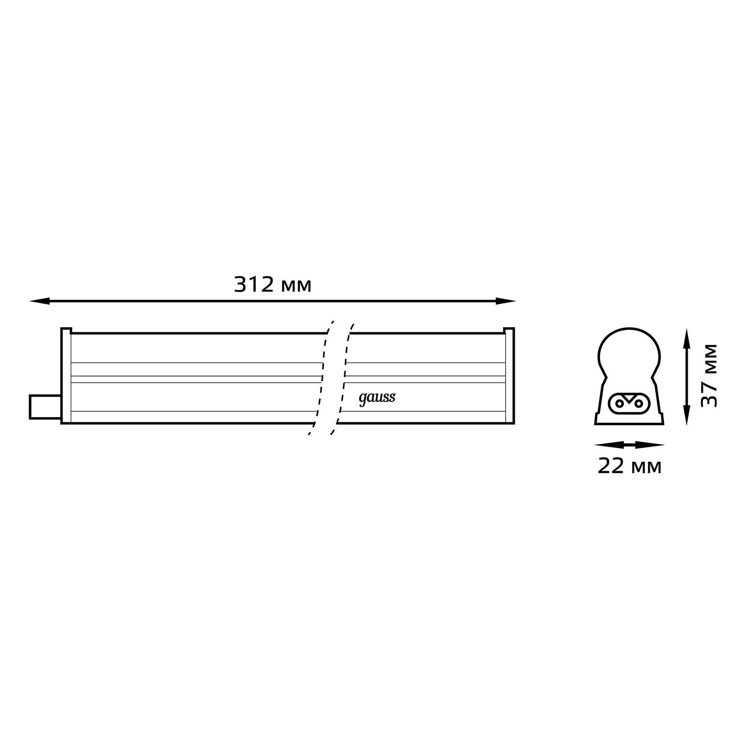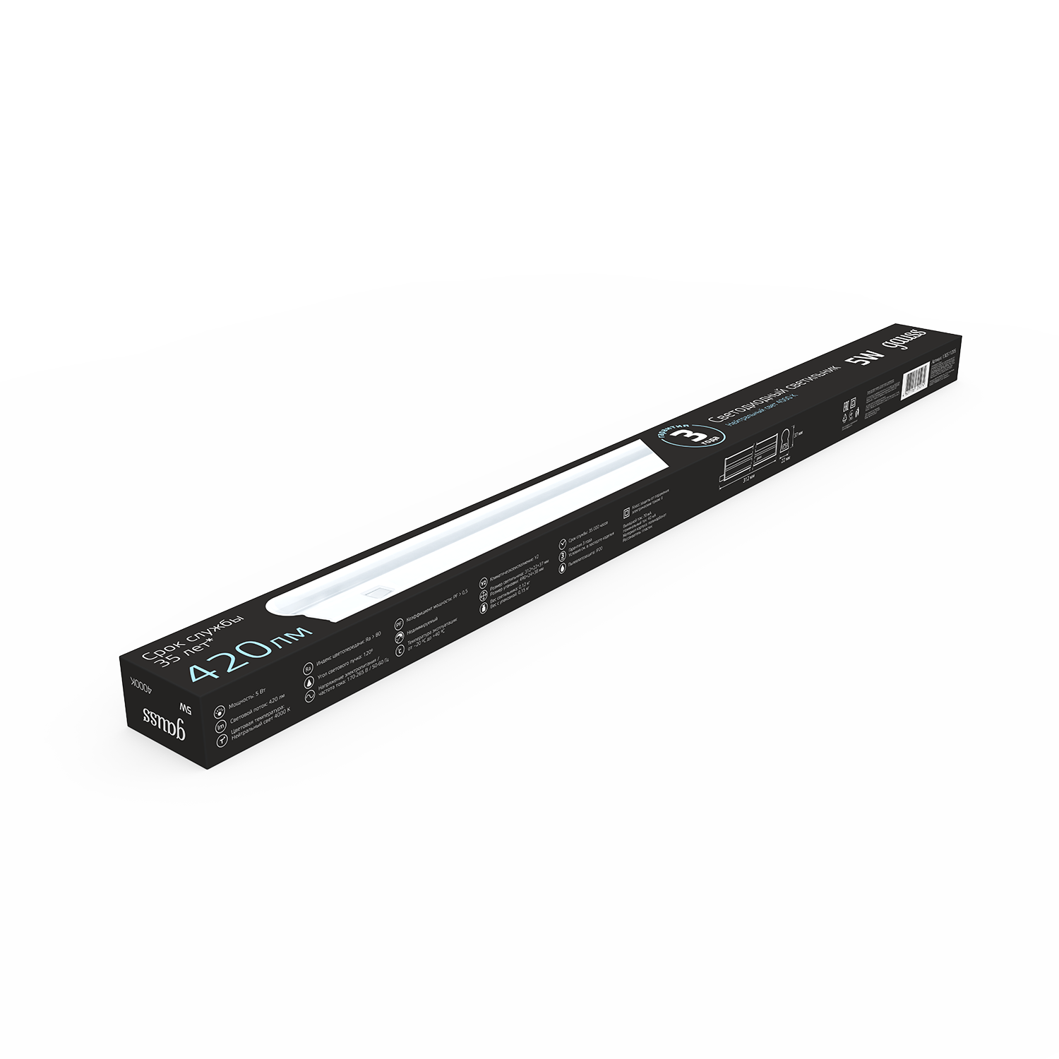 Название производителя: Светильник с кнопкой Gauss TL линейный 5W 420lm 4000K IP20 312х22х37 (к.п. 1м, Коннект2шт, креп 1шт) LED 1/25