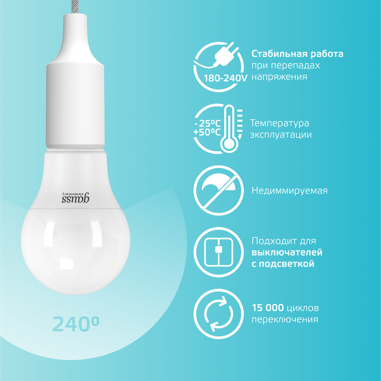 Лампа Gauss Elementary A60 послужит презентабельному освещению любого помещения.