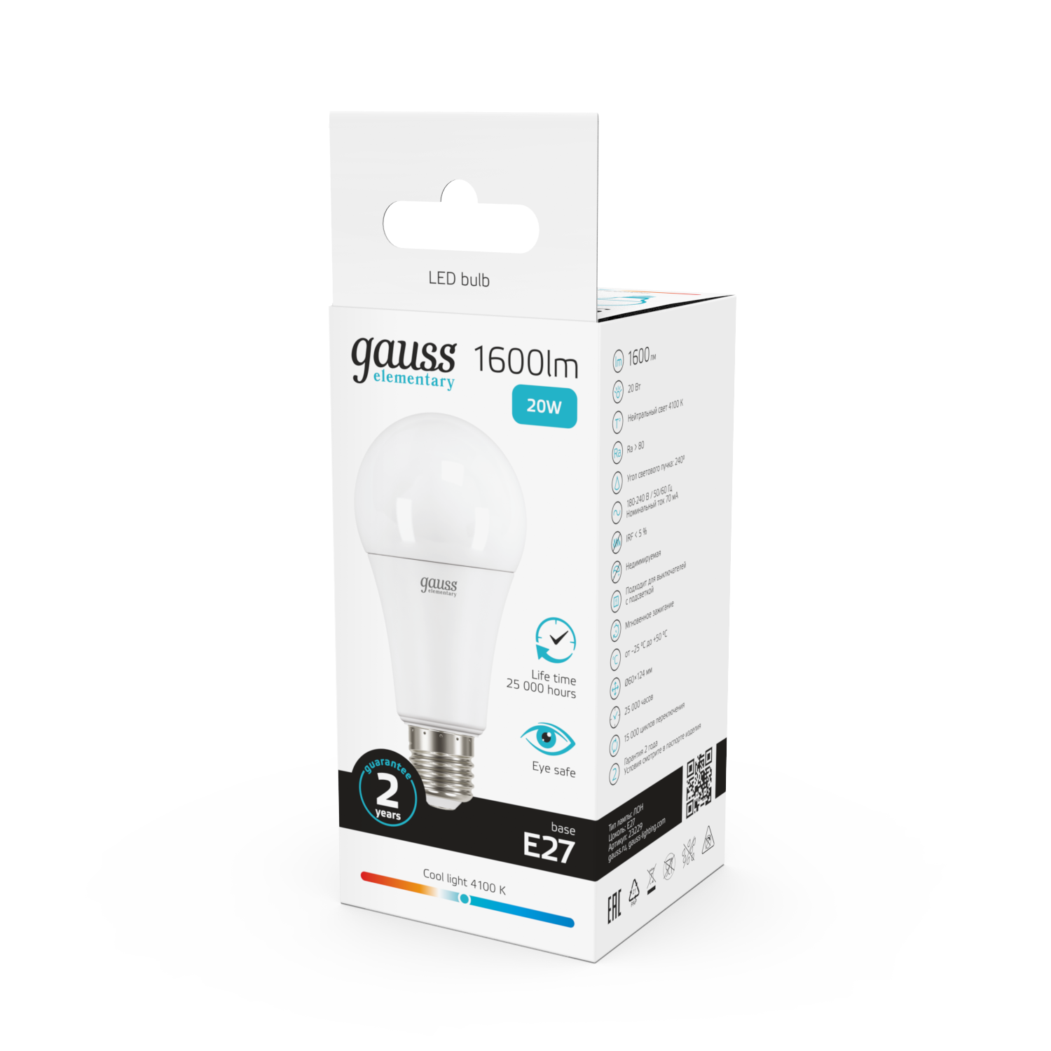 Название производителя: Лампа Gauss Elementary A60 20W 1600lm 4100K E27 LED 1/10/50