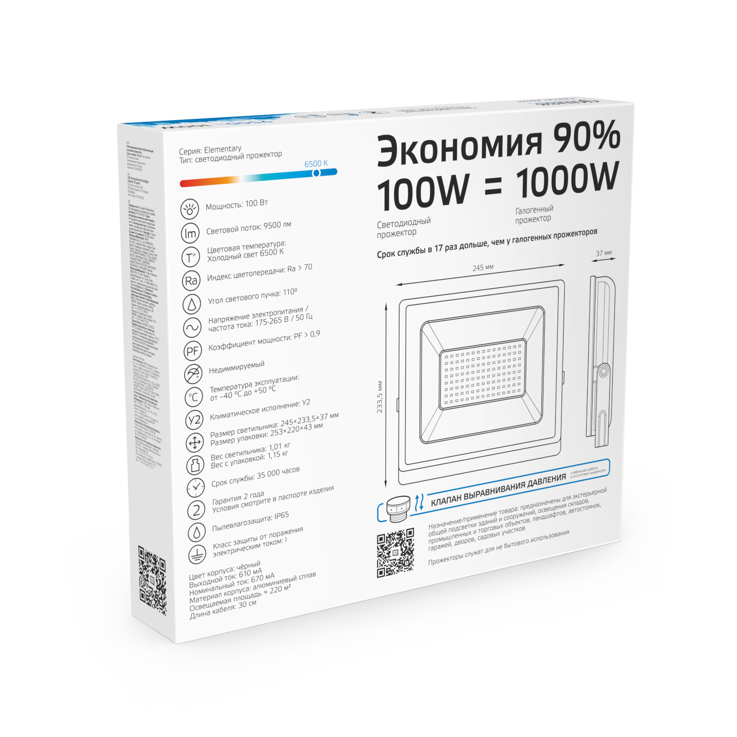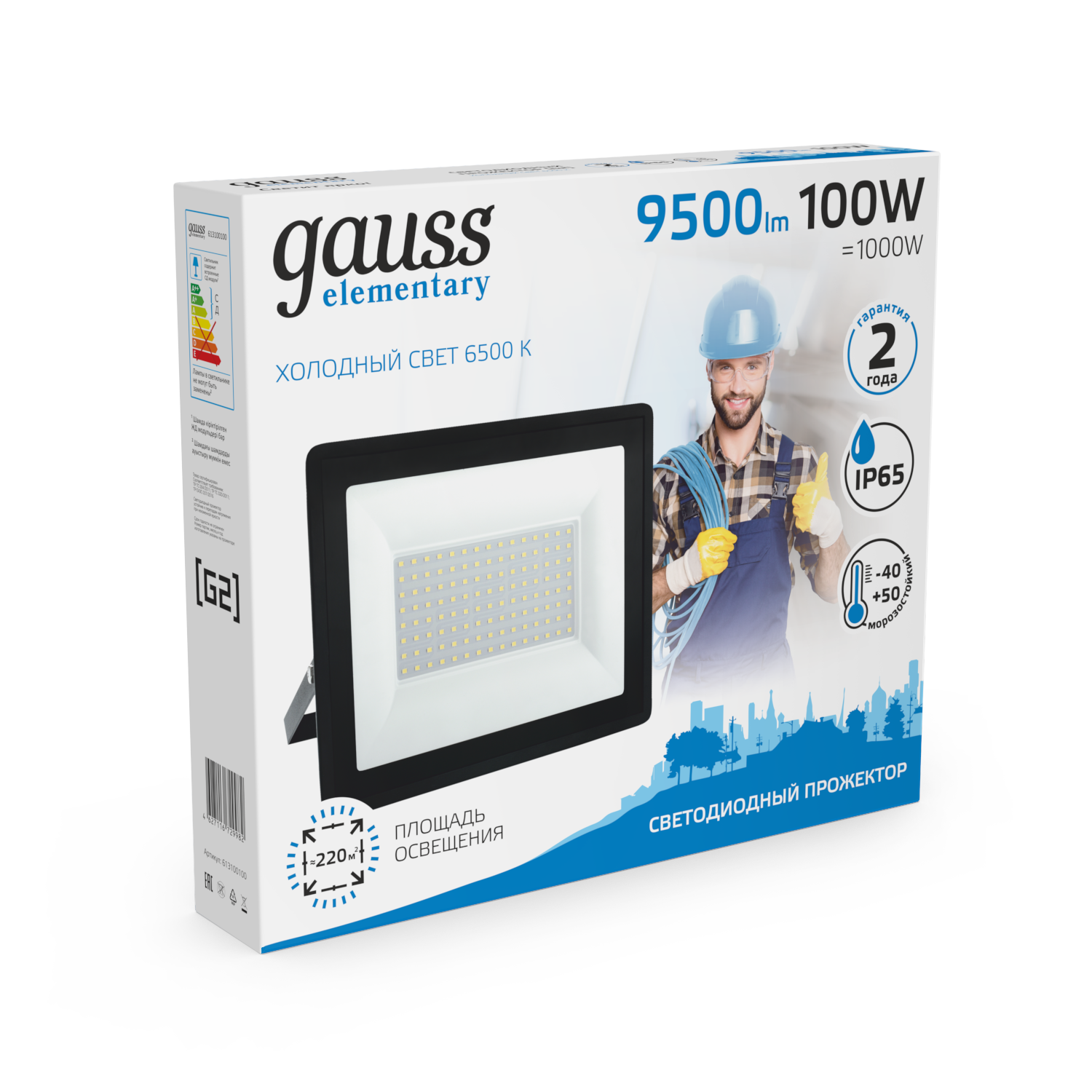 Название производителя: Прожектор светодиодный Gauss Elementary G3 100W 9500lm IP65 6500К черный 1/16