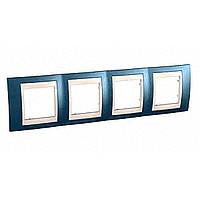 Рамка Schneider Electric UNICA ХАМЕЛЕОН (голубой лёд) четырёхместная с бежевой декоративной вставкой.