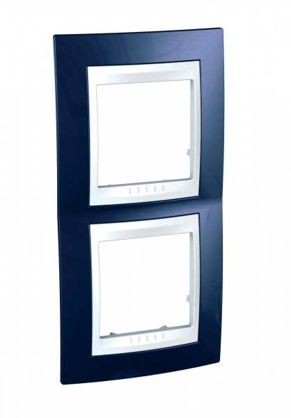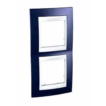 Рамка Schneider Electric UNICA ХАМЕЛЕОН (индиго) двухместная с белой декоративной вставкой.