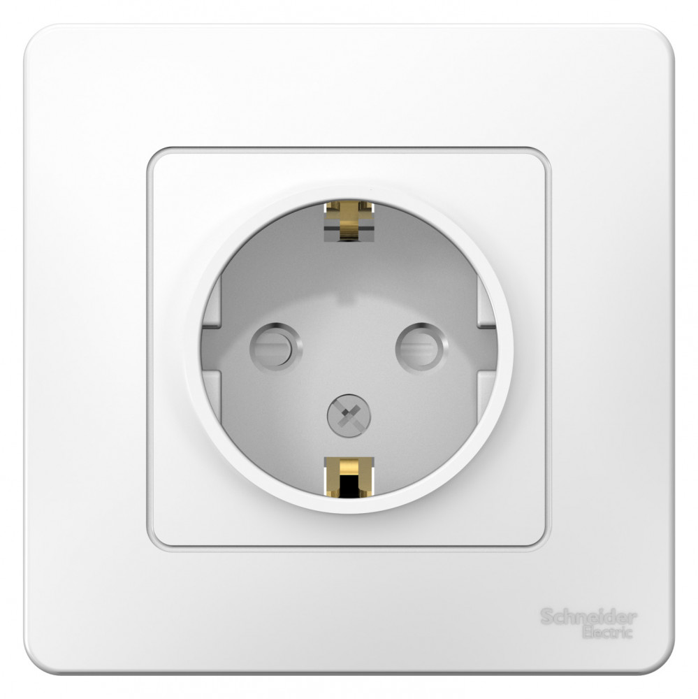 Розетка Systeme Electric (ранее Schneider Electric) BLANCA (белый, скрытой установки) одноместная, с заземлением и шторками предназначена для сетей до 250В, на ток до 16А. Шторки открываются только при одновременном равномерном давлении в оба отверстия и препятствуют проникновению посторонних предметов. Они обеспечат дополнительную безопасность в доме, где есть дети. Корпус изделия выполнен из ABS-пластика. (ранее Schneider Electric ЭУИ PRIMA RS16-004-B, RS16-004-BI)