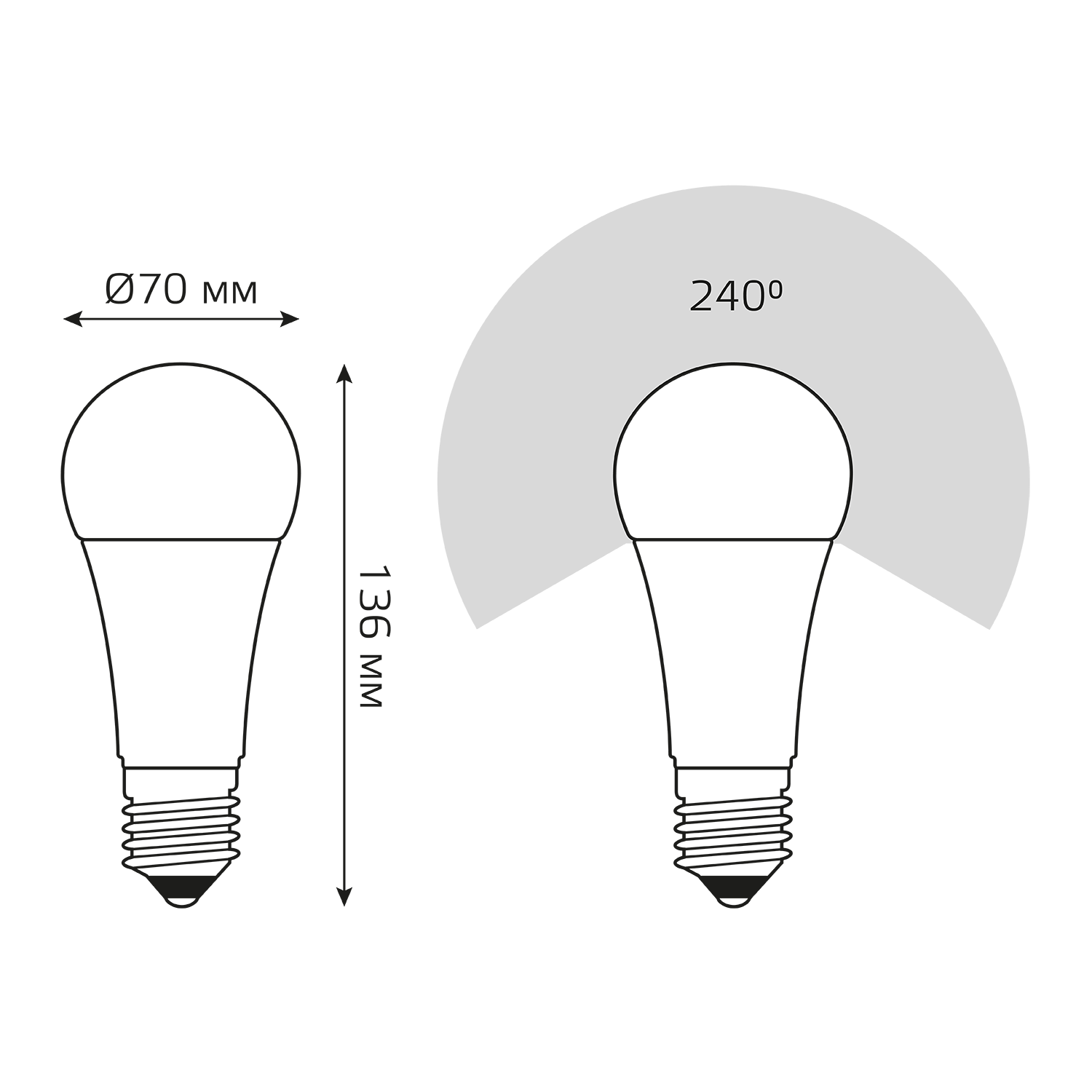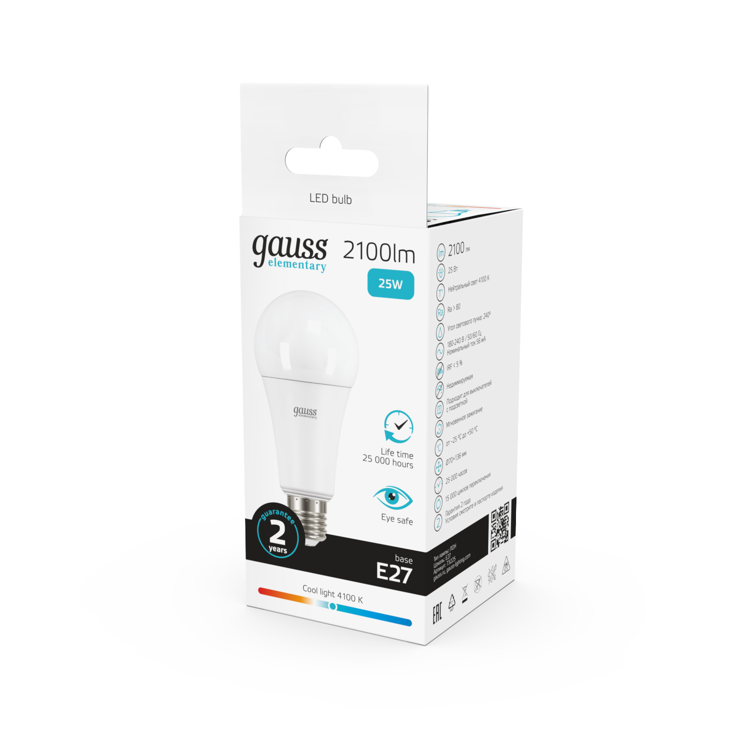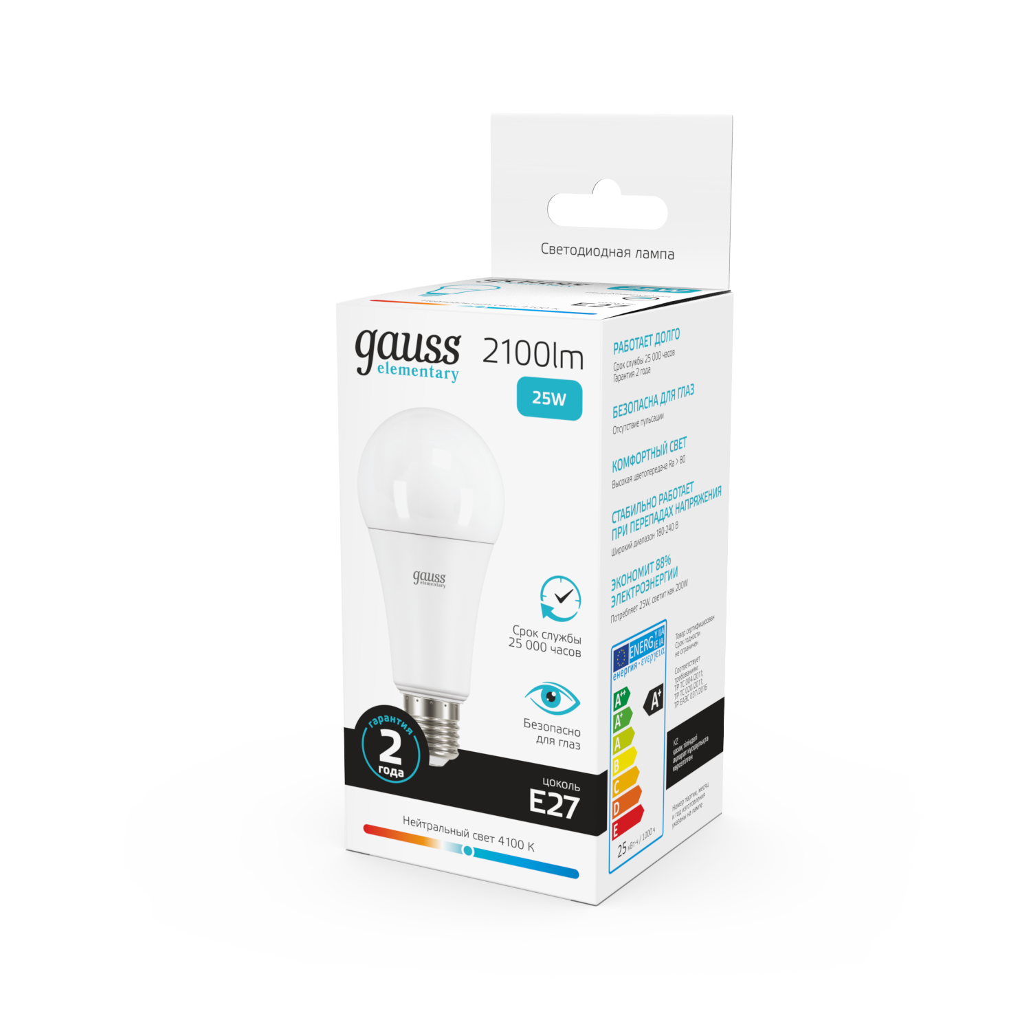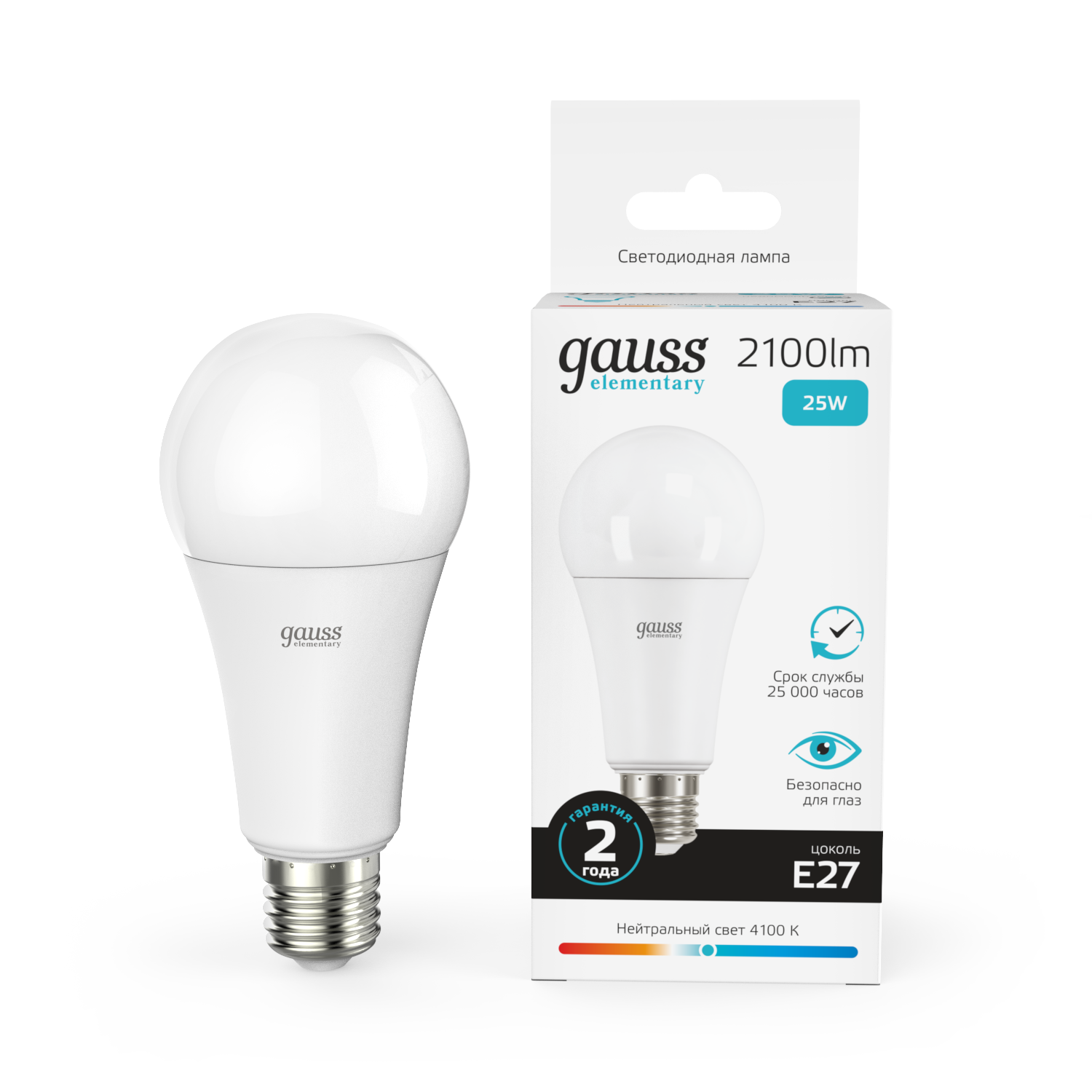 Название производителя: Лампа Gauss Elementary A70 25W 2100lm 4100K E27 LED 1/10/50