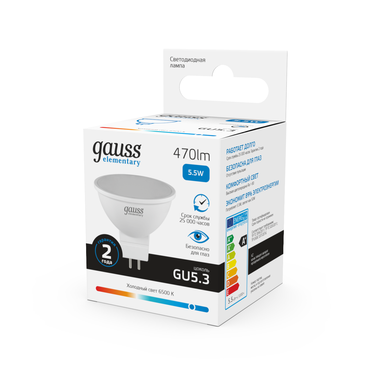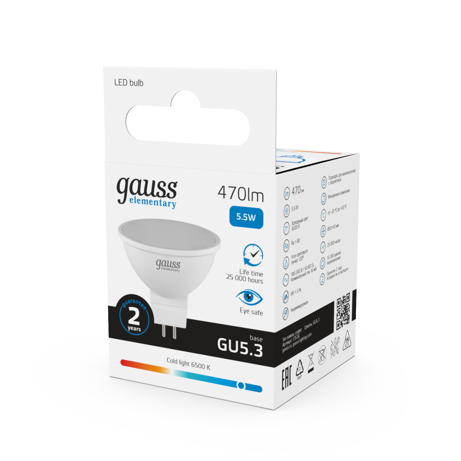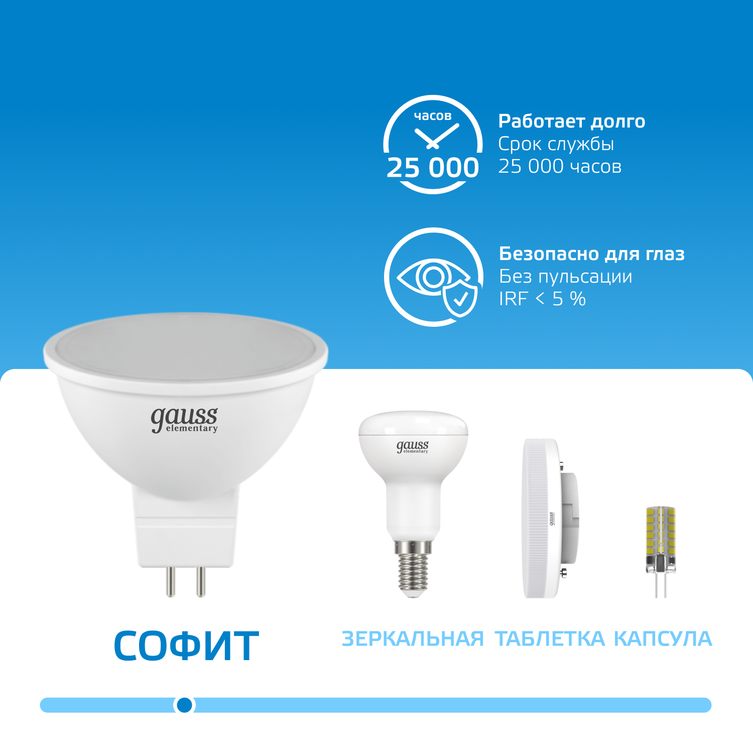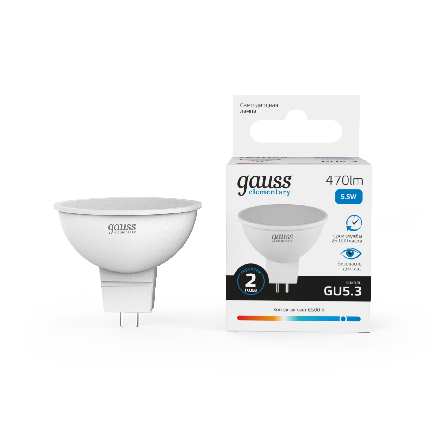 Название производителя: Лампа Gauss Elementary MR16 5.5W 470lm 6500К GU5.3 LED 1/10/100