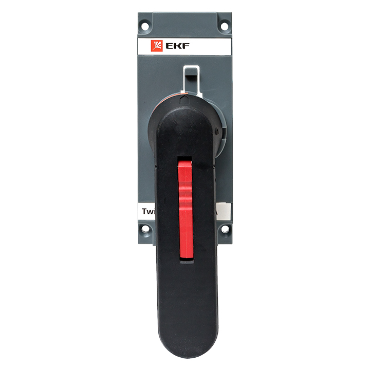 Рукоятка управления для прямой установки на рубильники TwinBlock EKF. Рубильники серии TwinBlock предназначены для пропускания номинальных токов, включения и отключения электрических цепей номинальным напряжением до 690 В переменного тока частотой 50 и 60 Гц в устройствах распределения электрической энергии. Для моделей без рукоятки предусмотрены два типа рукояток: выносная рукоятка для управления через дверь и рукоятка управления для прямой установки на рубильник.