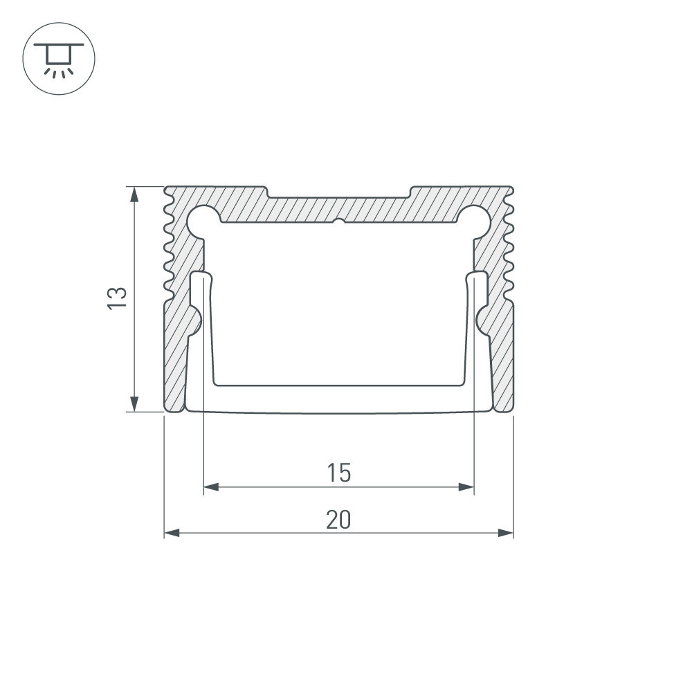 Алюминиевый анодированный профиль для светодиодных лент и линеек. Габаритные размеры (L×W×H): 2000x20x13 мм. Ширина площадки для ленты 15 мм. Экраны, заглушки и другие аксессуары приобретаются отдельно. Цена за 1 метр. Кратность заказа поставщику: 2 м.