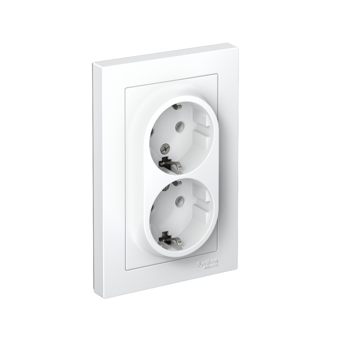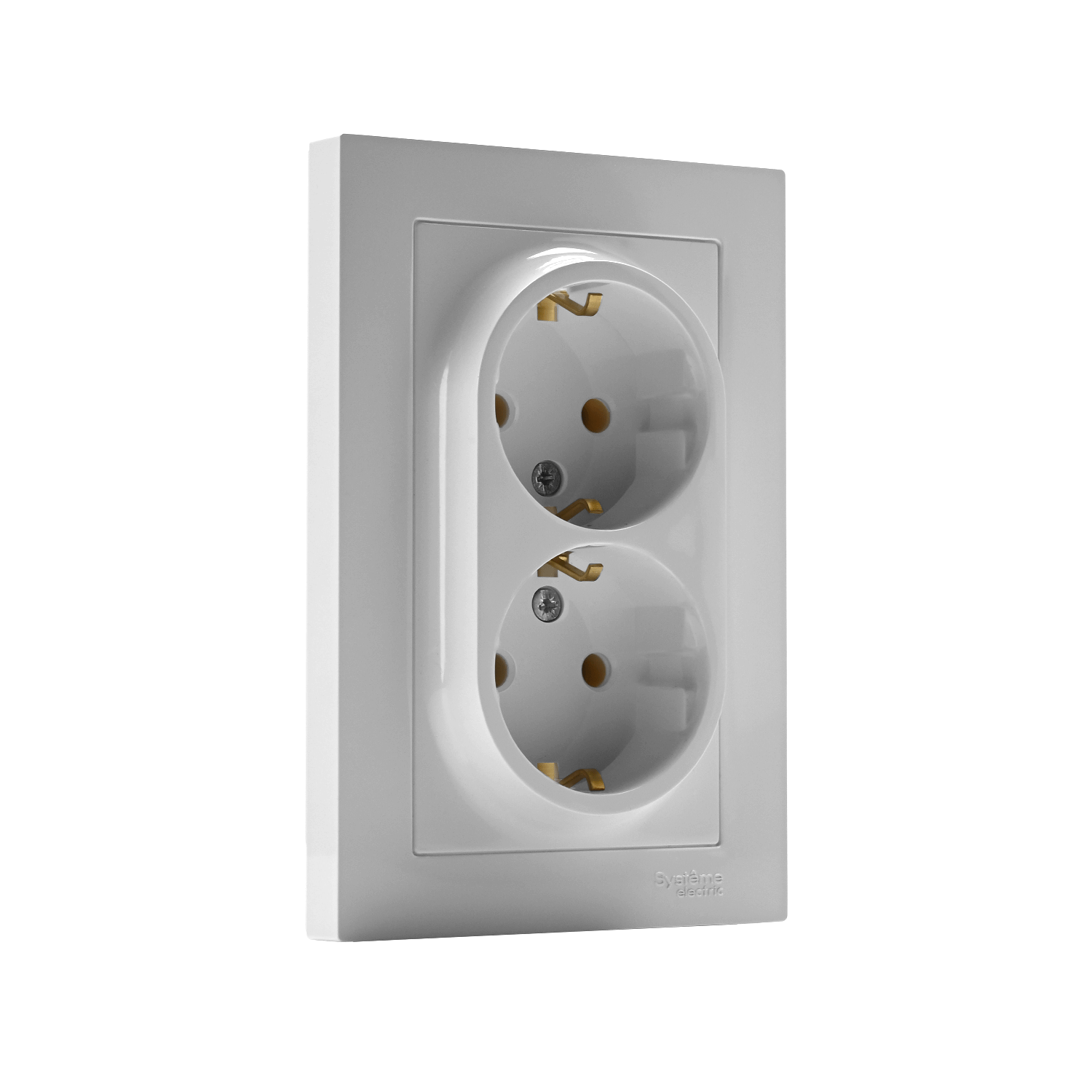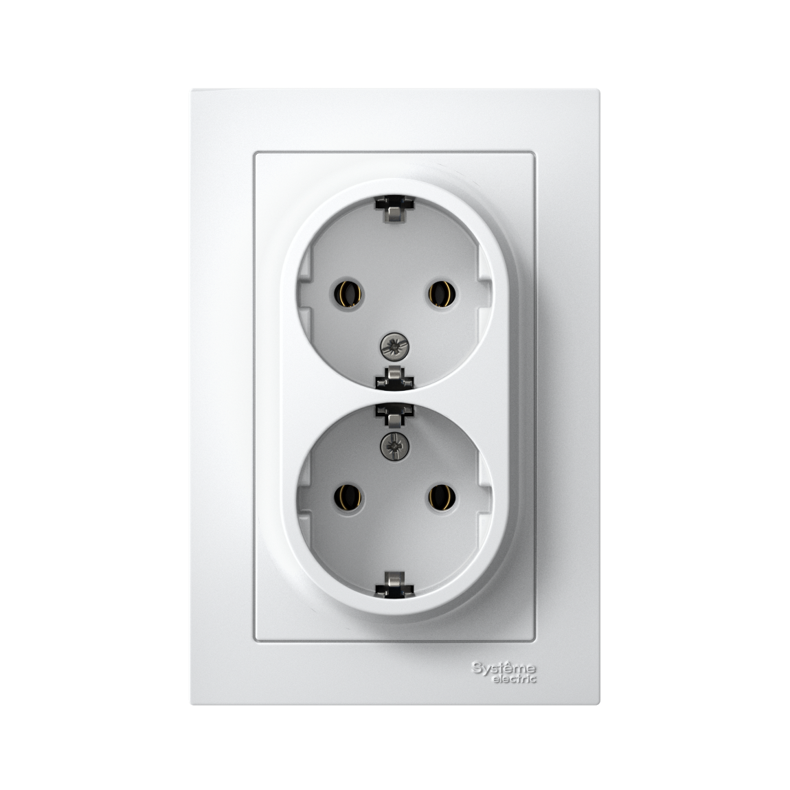 Systeme Electric AtlasDesign Бел Розетка с/з двойная, 16А, в сборе
