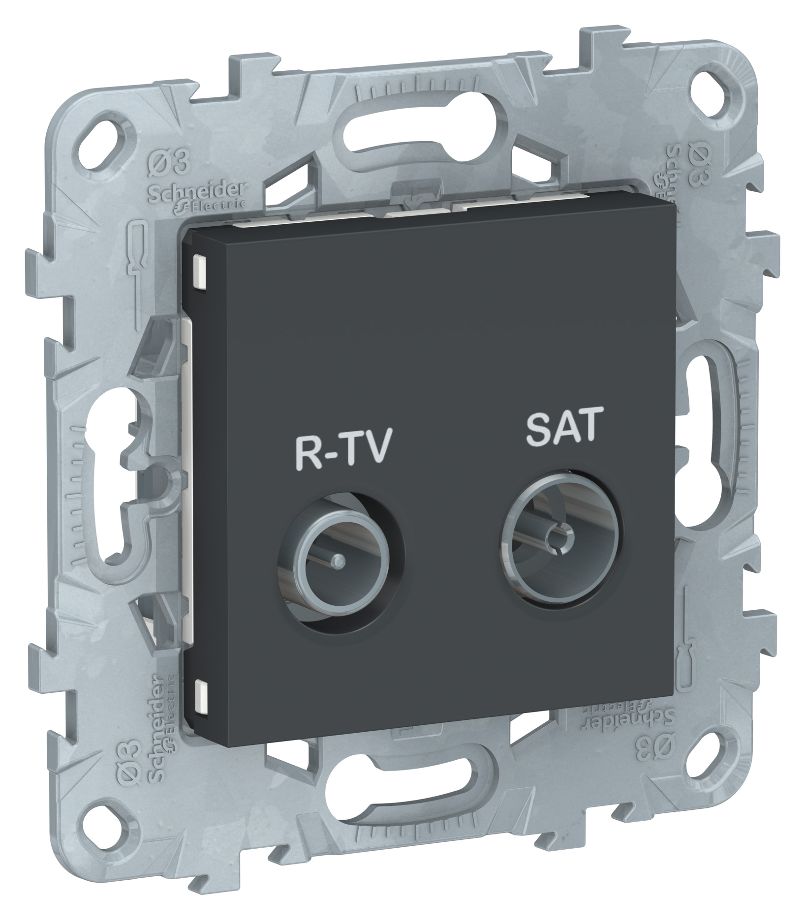 Розетка R-TV/ SAT Schneider Electric UNICA NEW (антрацит) проходная телекоммуникационная. - Привлекательный внешний вид. - Сокращение времени монтажа. - Термопластик АBS, устойчивый к УФ излучениям.