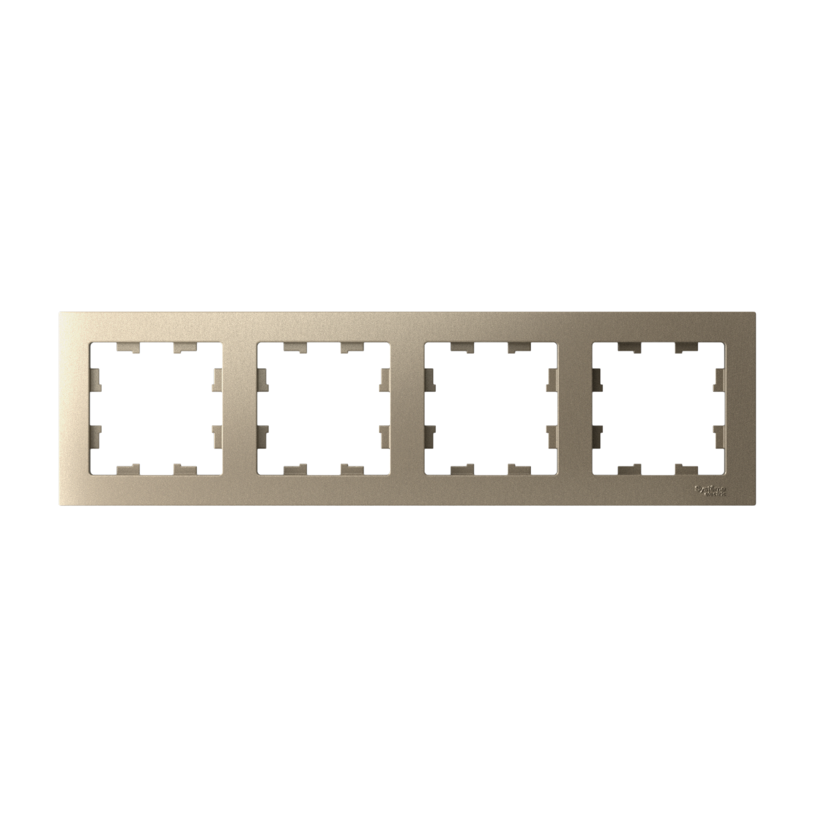 Рамка Systeme Electric (ранее Schneider Electric) серии AtlasDesign в цвете шампань четырёхместная. Устанавливается в вертикальном и горизонтальном положениях. Лицевые детали из качественного ABS-пластика, устойчивого к царапинам и УФ-излучению. Позволяет гармонично вписать электроустановочное изделие в интерьер помещения.