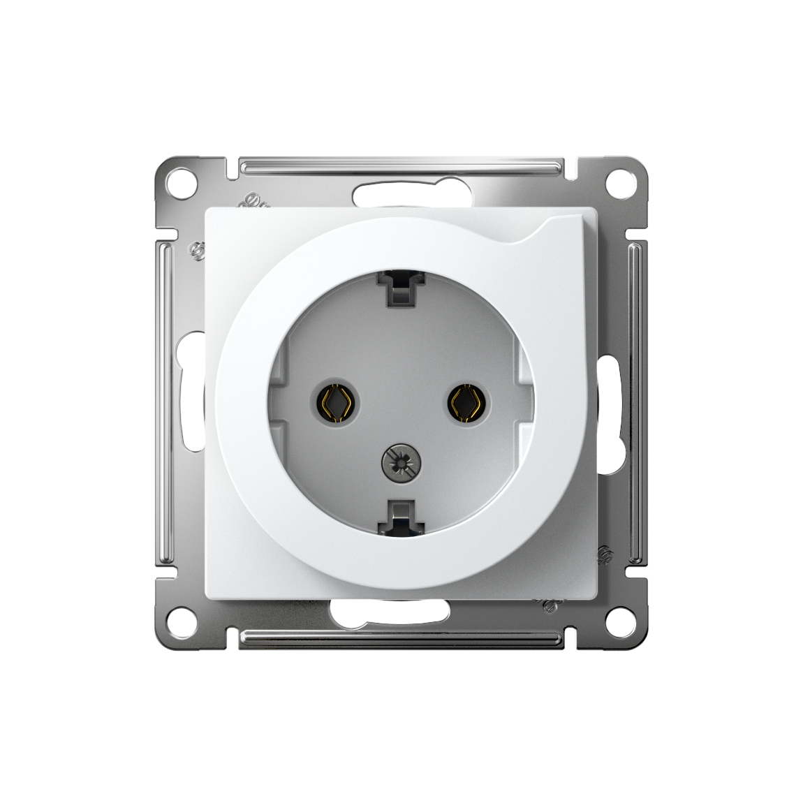 Механизм Systeme Electric (ранее Schneider Electric) серии AtlasDesign в цвете белый розетки одинарной с заземлением, шторками с выталкивателем подходит для сетей 250 В, на ток 16 А. Пластик с ионами серебра в белом цвете обеспечивает антибактериальный эффект. Заземляющий контакт обеспечивает дополнительную защиту от удара электрическим током. Оснащена специальным механизмом: рычаг при повороте выталкивает вилку из розетки, что особенно удобно при частом подключении к розетке массивных вилок от бытовых приборов.
