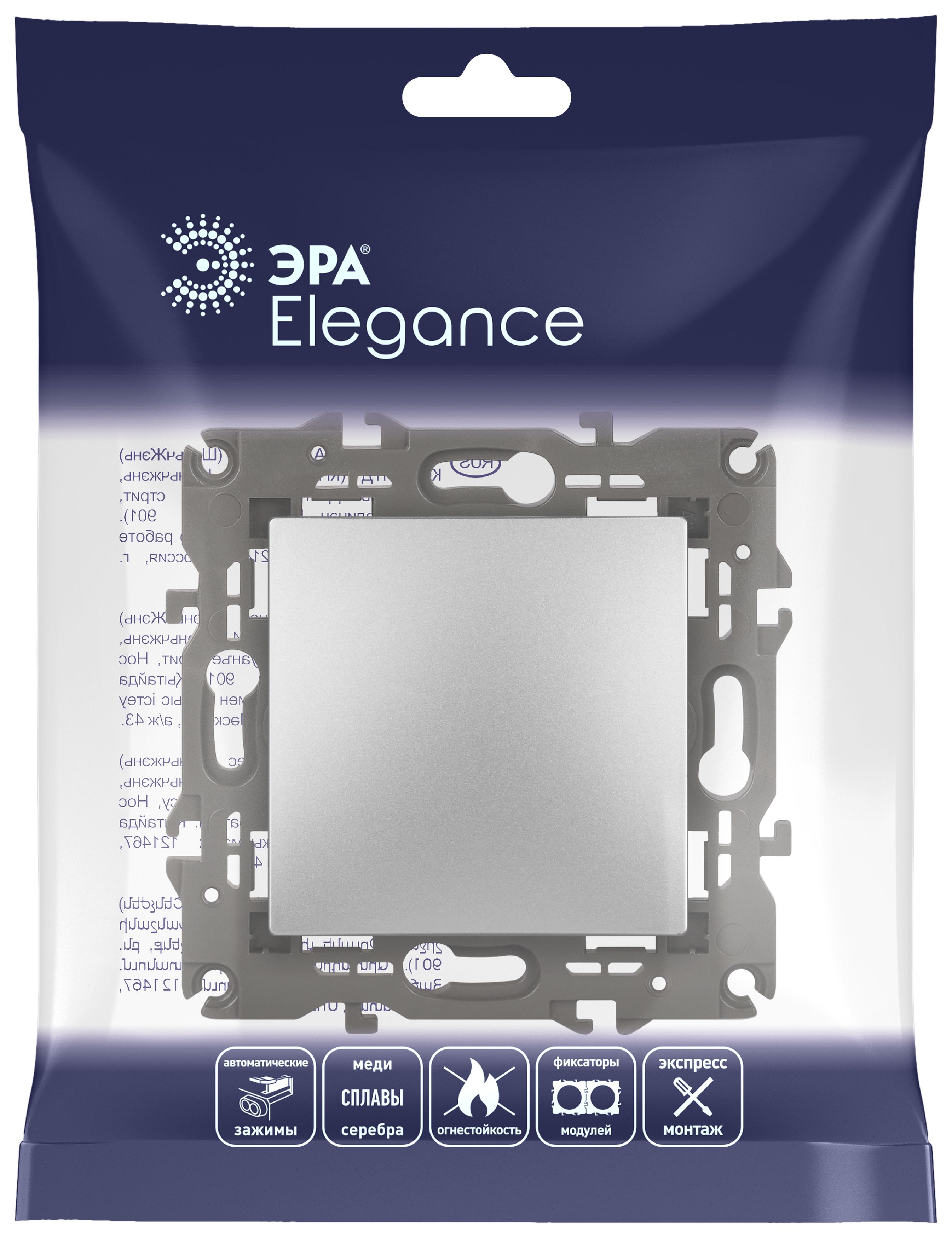 Название производителя: Выключатель ЭРА Elegance 14-1101-03 10АХ-250В IP20 алюминий