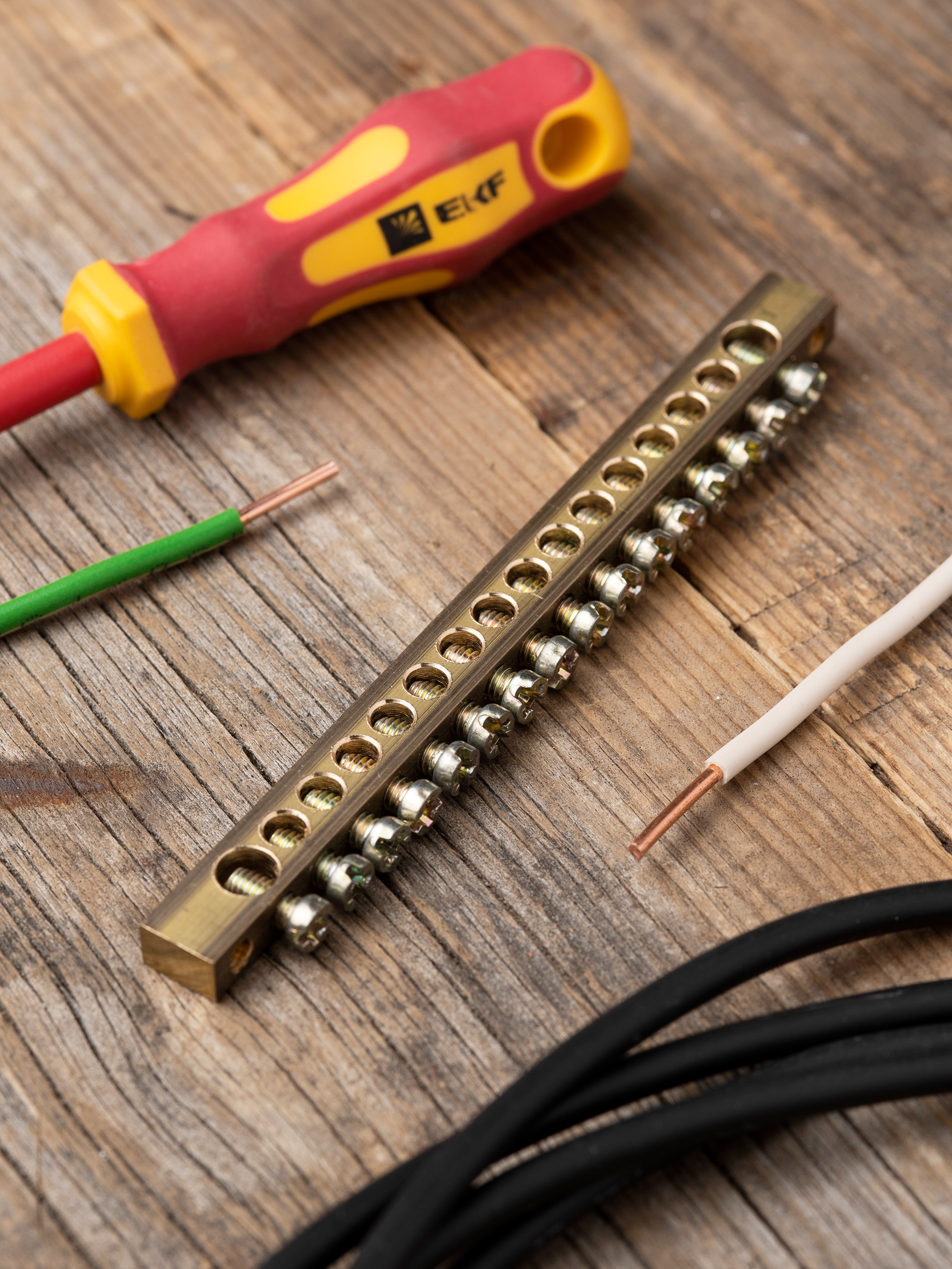 Шины предназначены для присоединения нулевых проводников (шина N) и заземления (шина PE). Шины выполнены из латуни и никелированной латуни. Нулевая шина устанавливается на изоляторе.