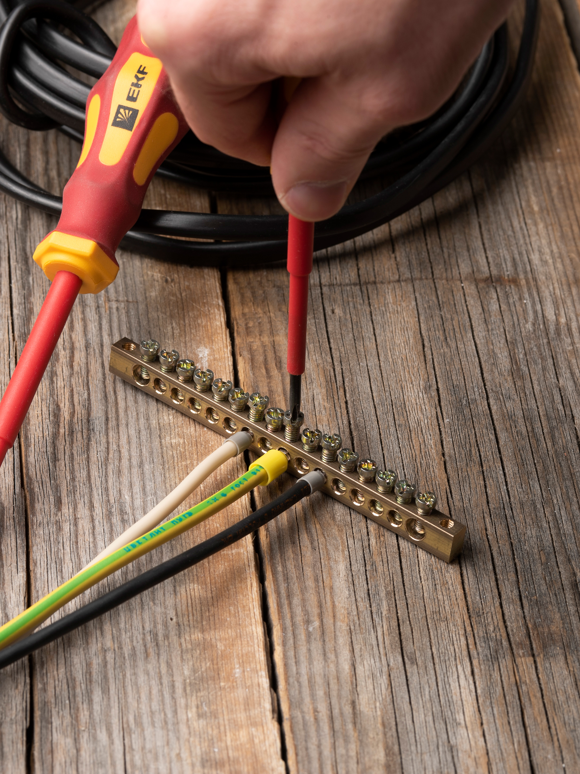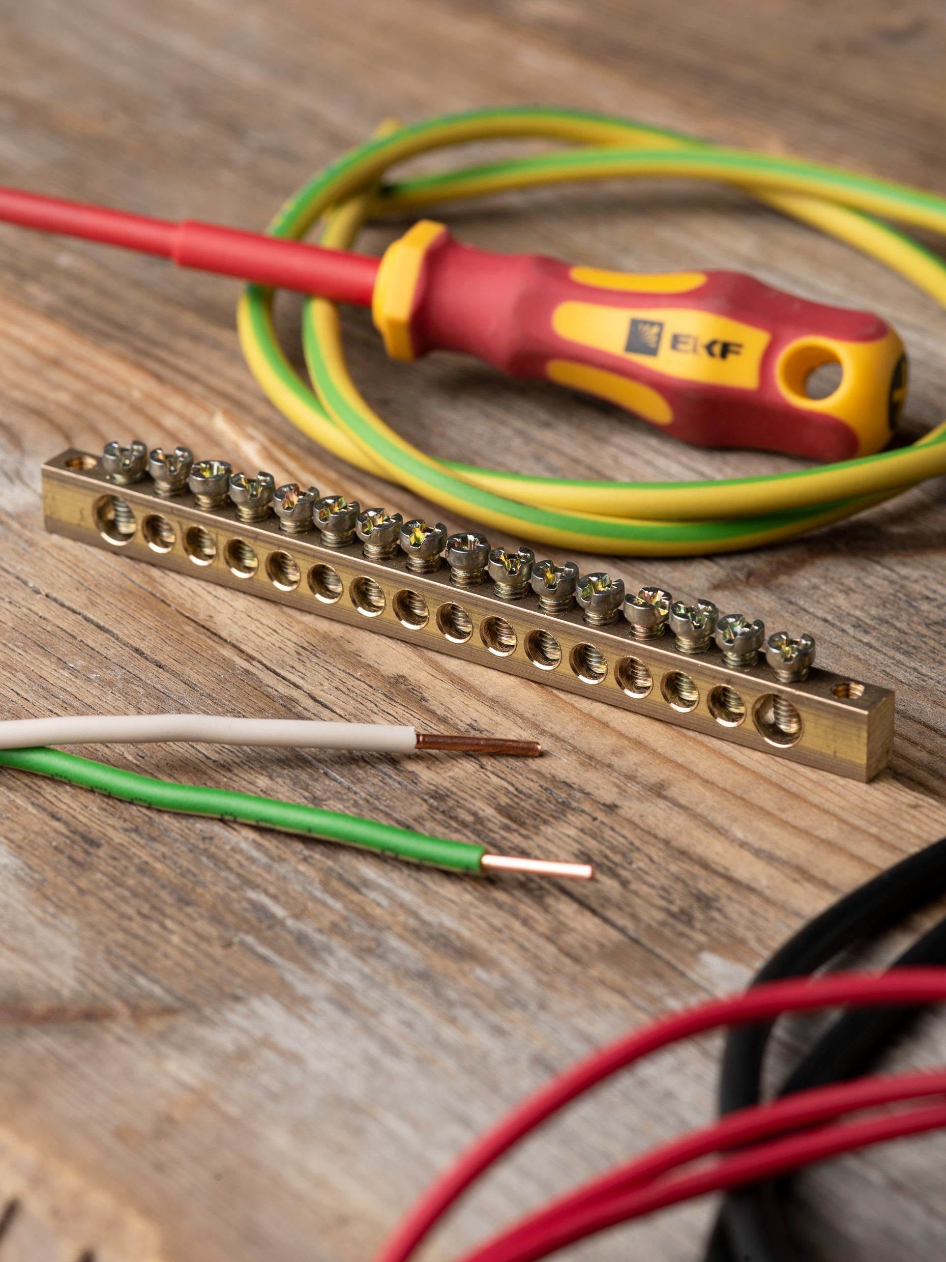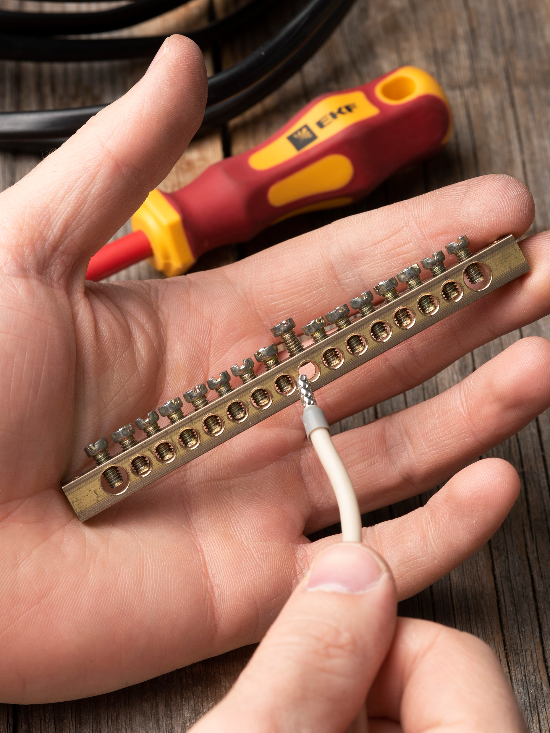 EKF PROxima Шина PEN "ноль-земля" (6х9мм) 16 отверстий латунь крепеж по краям.
