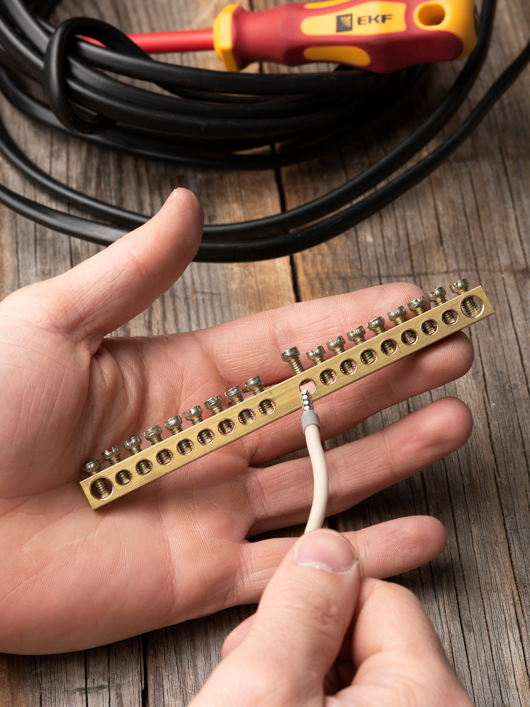 EKF PROxima Шина PEN "ноль-земля" (6х9мм) 18 отверстий латунь крепеж по центру.