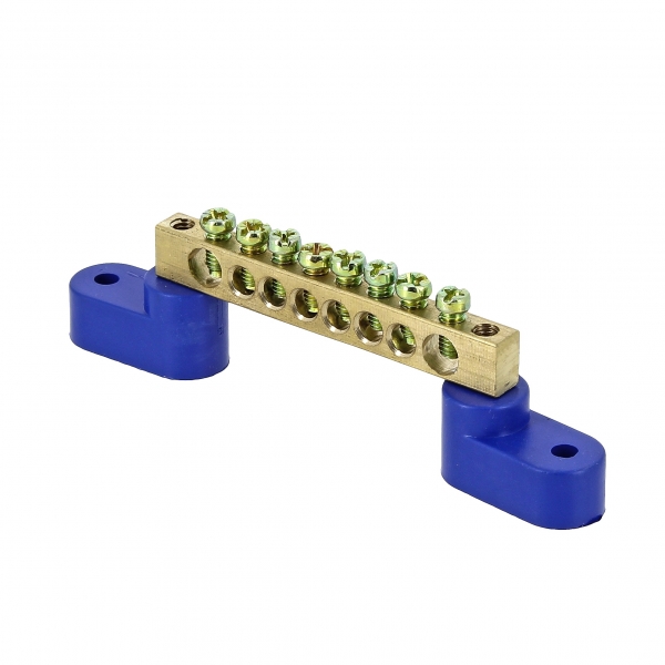 Название производителя: Шина "0" N (6x9мм) 8 отверстий латунь 2 синих угловых изолятора розничный стикер EKF PROxima