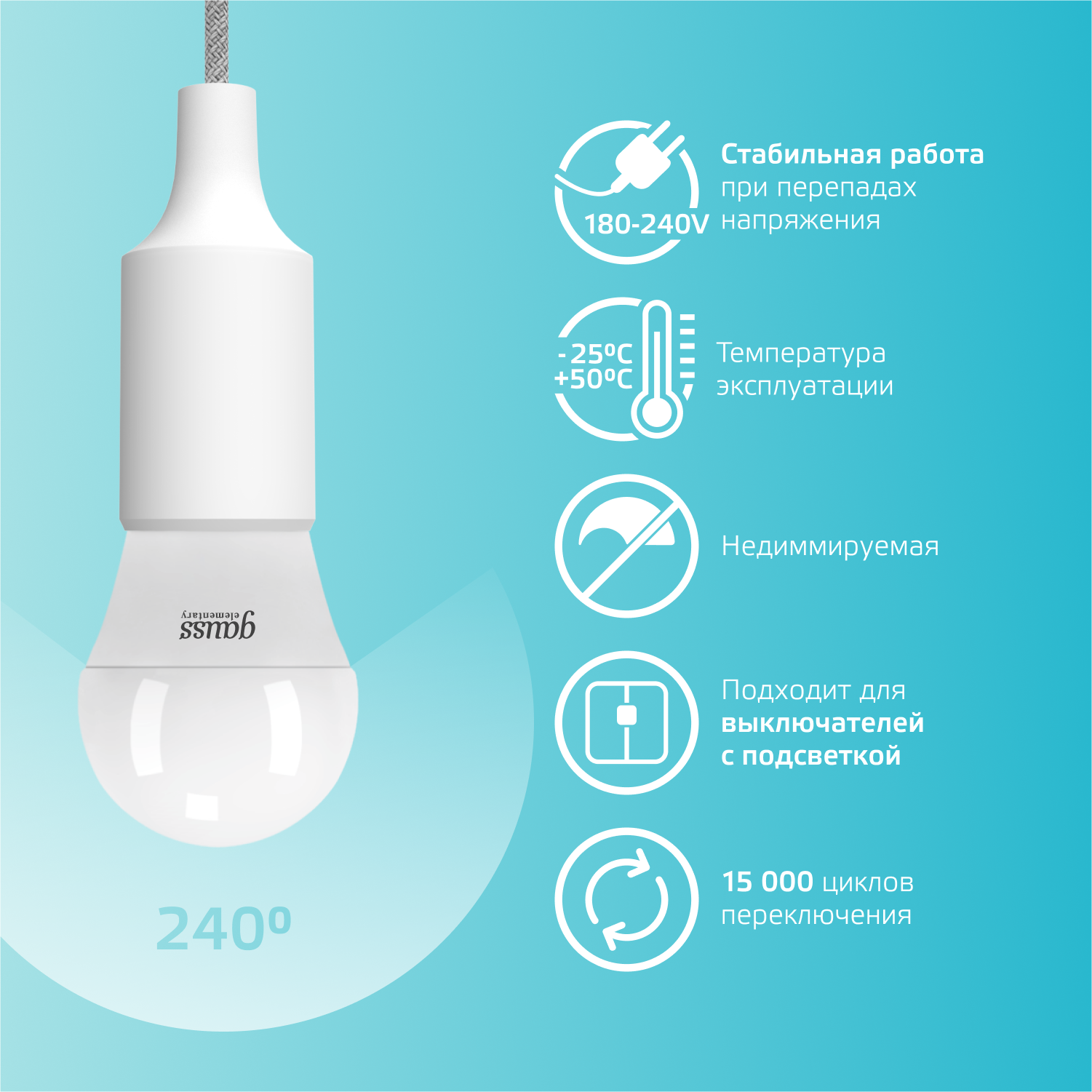 Светодиодные лампы Gauss Elementary – вечная классика, которая является энергосберегающей заменой обычным лампам накаливания. Модели представленные в ассортименте бренда обеспечивают пространство мягким не мерцающим светом и обладают всеми техническими характеристиками европейского уровня. В линейке представлены модели разных форм, высоких мощностей и размеров. Равномерное распределение света создает зрительный комфорт в любом помещении. Данная серия ламп создана для массового потребителя и имеет самое лучшее соотношение цена-качество.