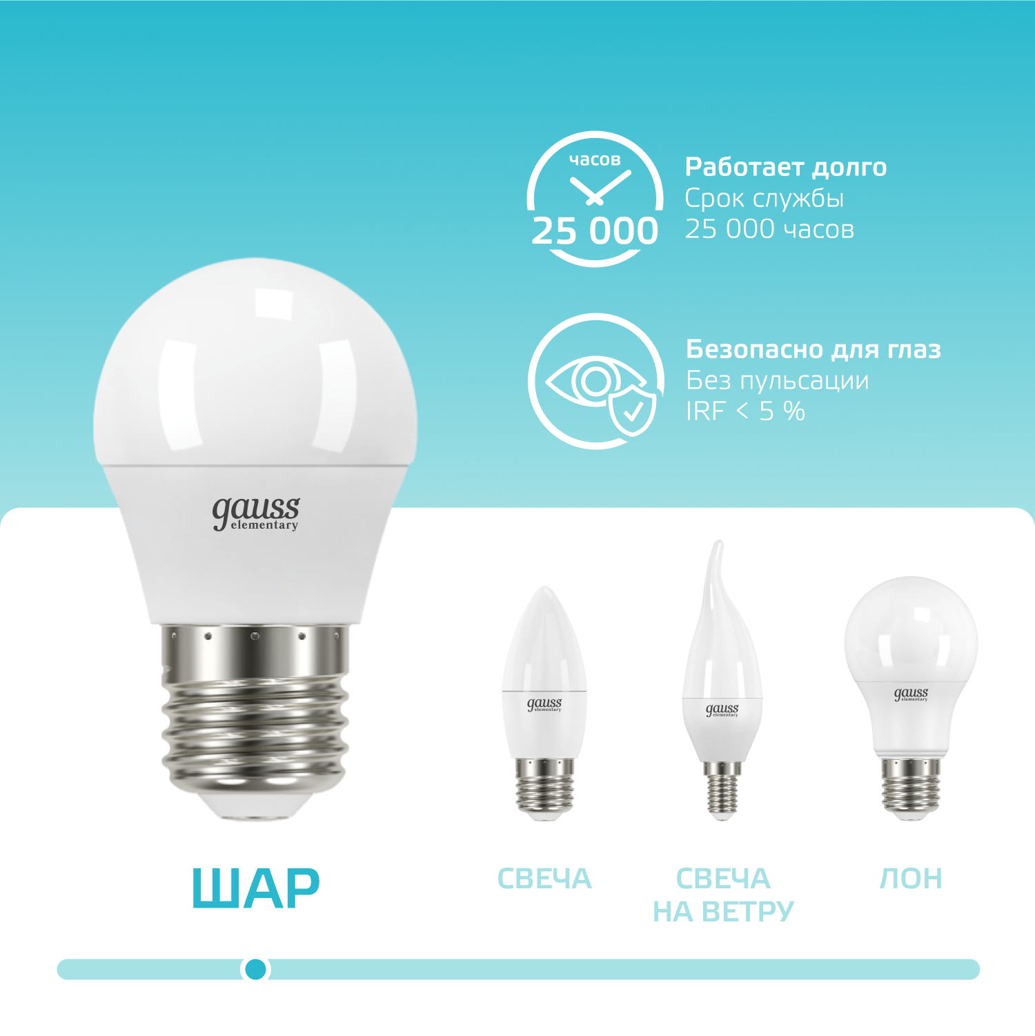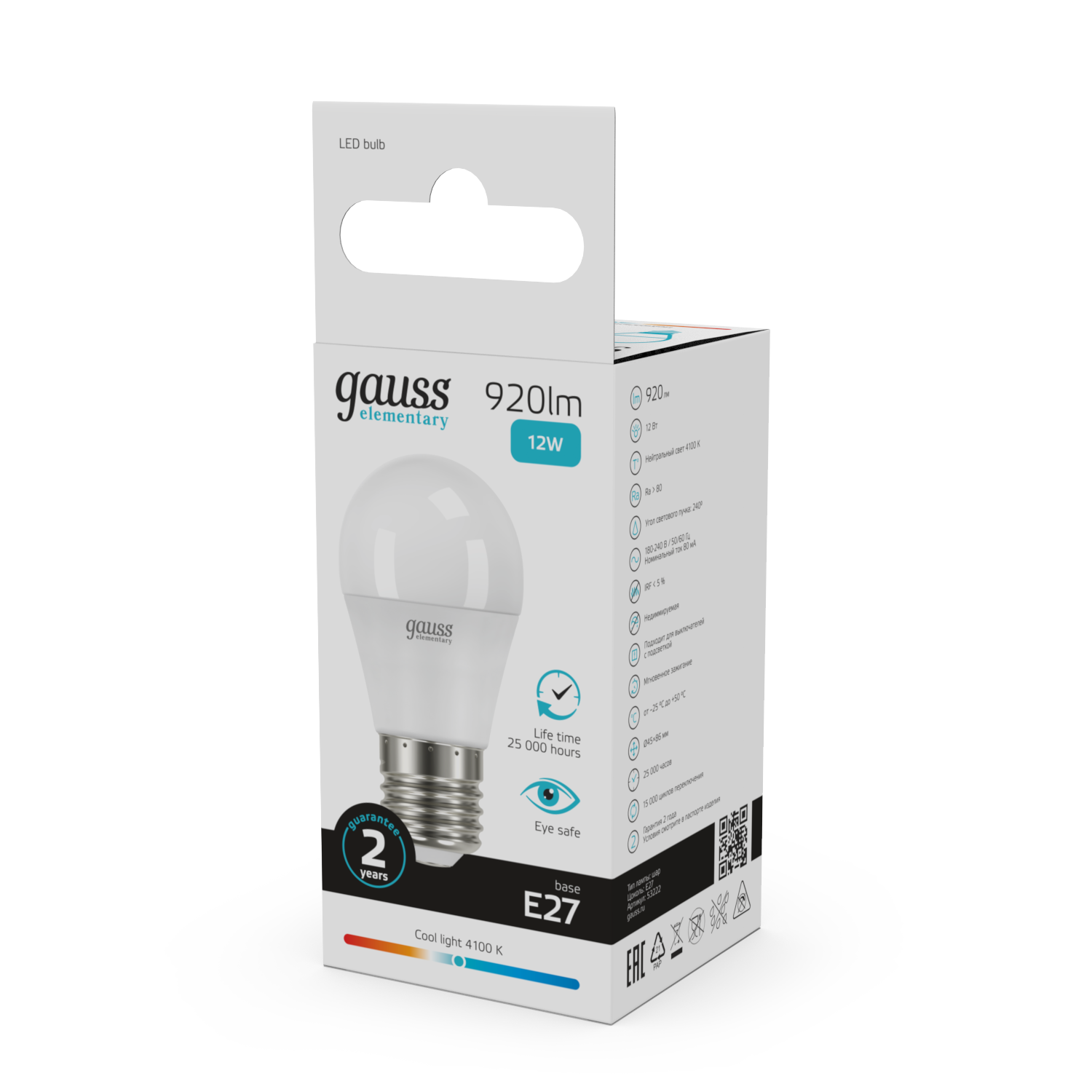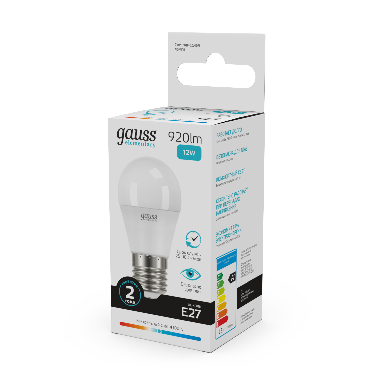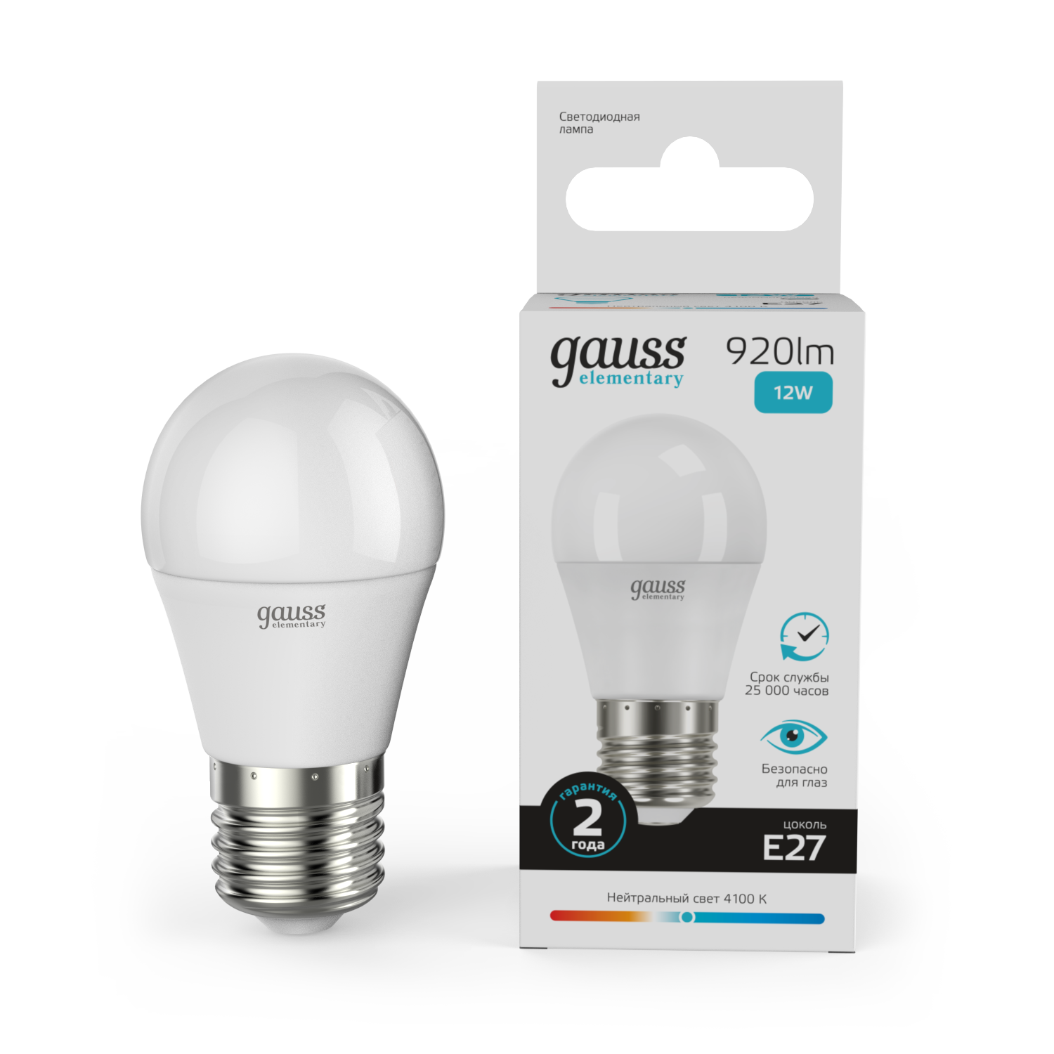 Название производителя: Лампа Gauss Elementary Шар 12W 920lm 4100K Е27 LED 1/10/100