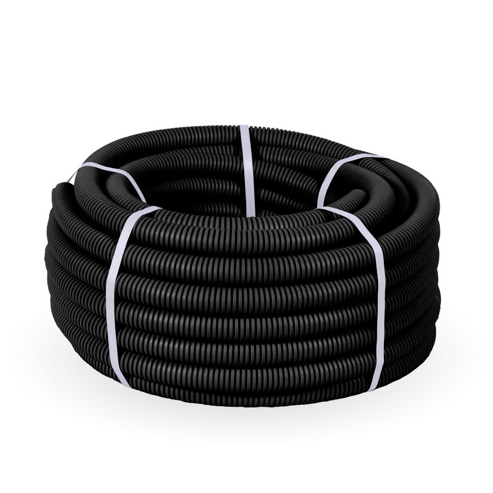 Промрукав Труба гофрированная ПВХ легкая 350 Н черная с/з д25 (50 м/2600 м уп/пал)
