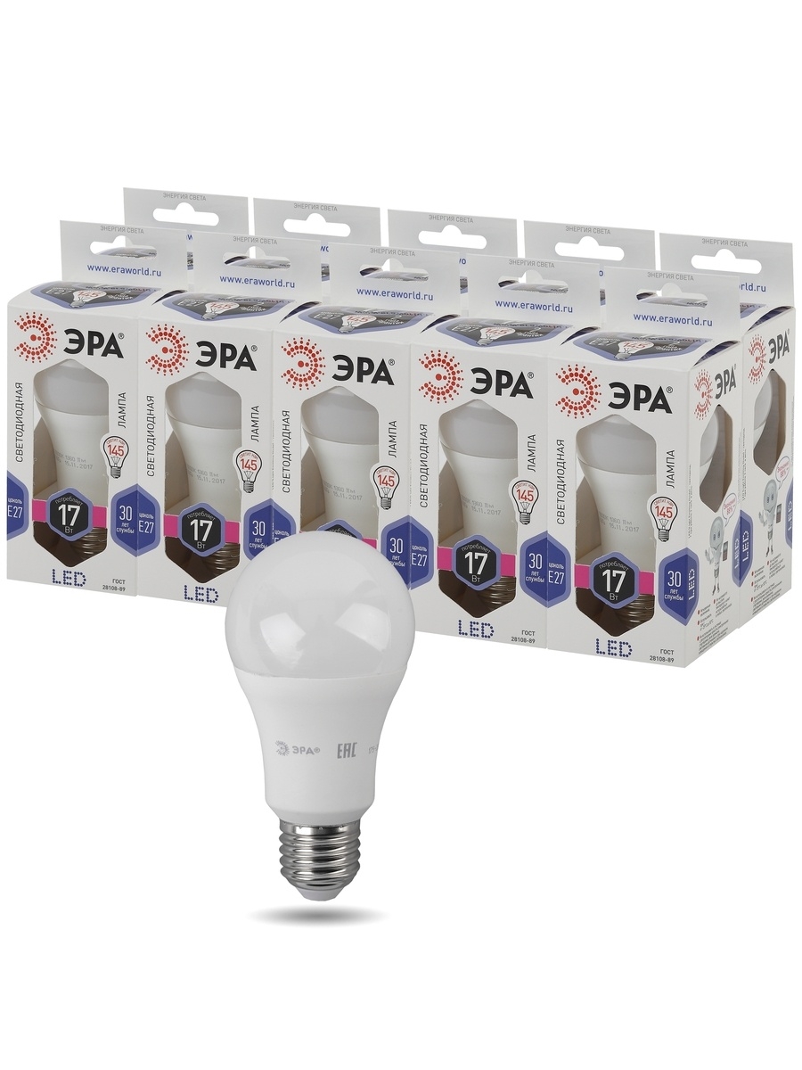 Название производителя: Лампа светодиодная ЭРА STD LED A60-17W-860-E27 17Вт груша холодный дневной свет Е27
