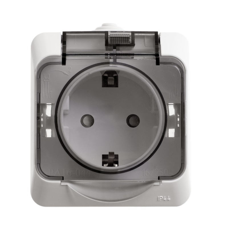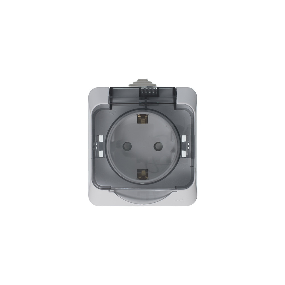 Systeme Electric Этюд наруж Бел Розетка 1-ая с/з с крышкой, с защитными шторками IP44