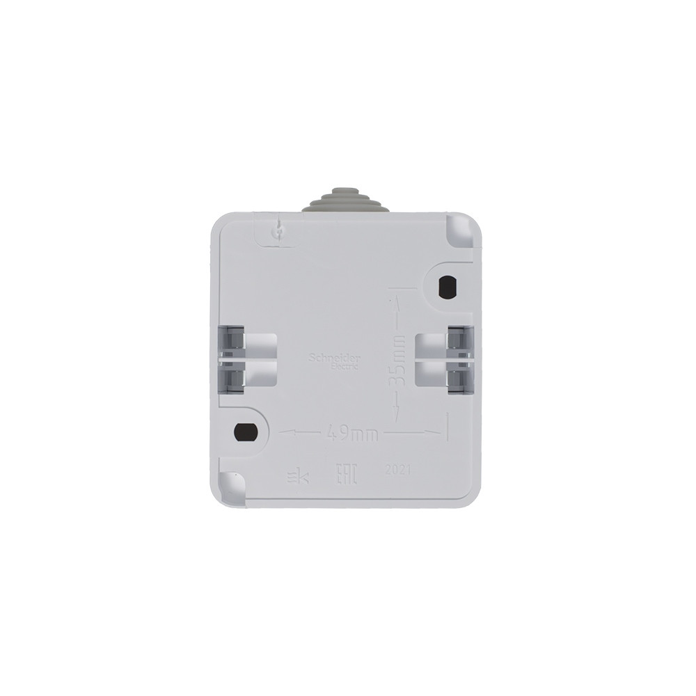 Розетка Systeme Electric (ранее Schneider Electric) ЭТЮД (белый, открытой установки) одноместная с заземлением и шторками предназначена для применения в сетях до 250В, на ток до 16А. Шторки обеспечивают дополнительную безопасность. Розетка удобна в применении и отлично подходит для ванной комнаты (IP44). Сделано в России. (ранее Schneider Electric ЭУИ RONDO44 RA16-112B-BI)
